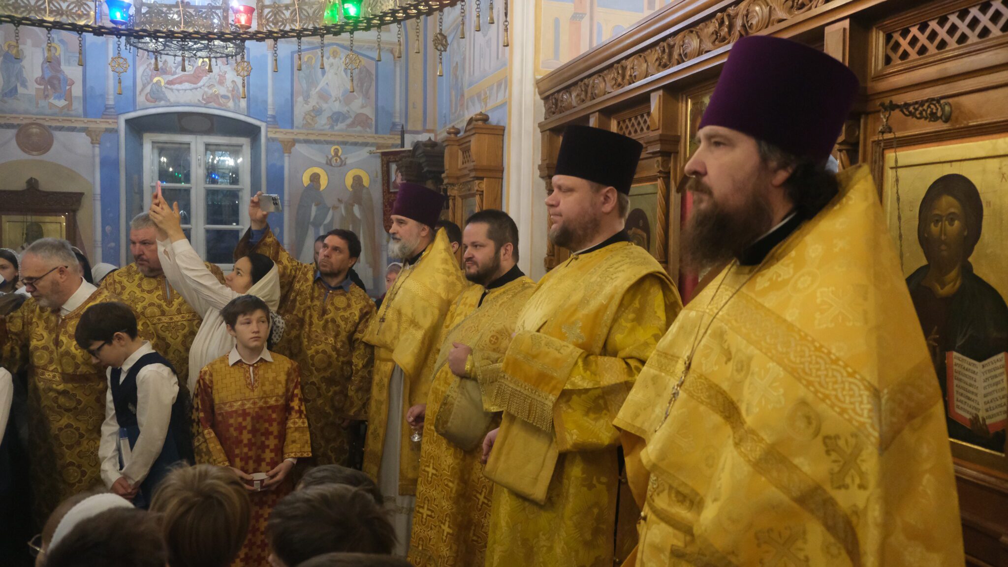 В храме молились прихожане и ктиторы храма, а так же педагоги, родители и учащиеся Православной Гимназии во имя преподобного Саввы Сторожевского, располагающейся на территории храма.