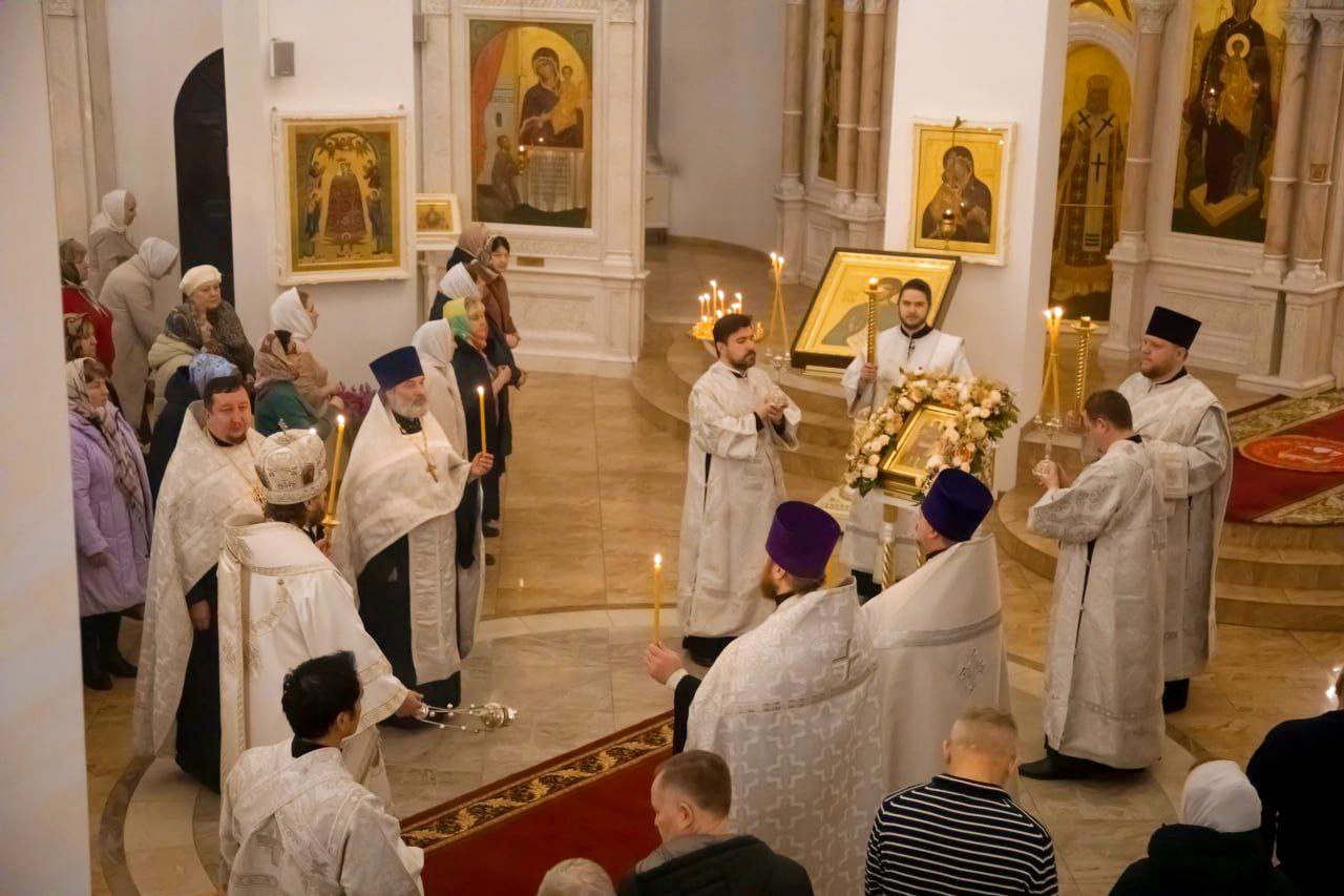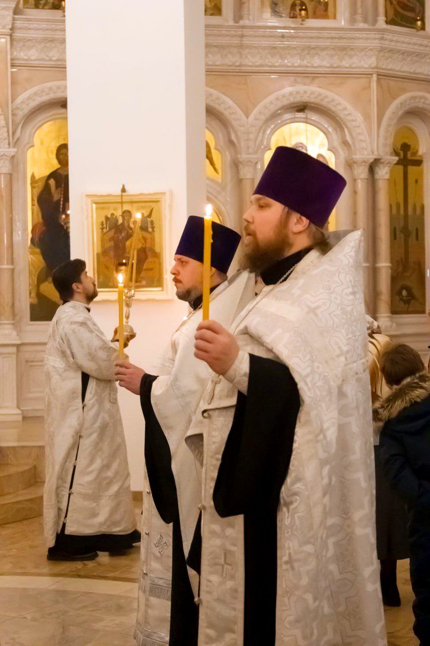 20 января, в канун дня памяти Архистратига Михаила и прочих Небесных Сил бесплотных – престольного праздника Михаило-Архангельского храма города Краснознамеск, было совершено праздничное Всенощное бдение.