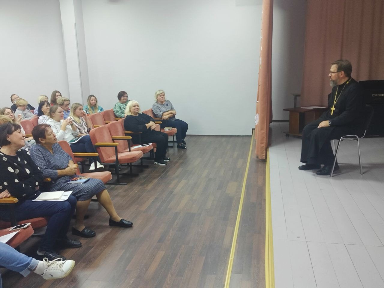 7 октября настоятель Мироносицкого храма священник Павел Малкин посетил Лицей г. Истра. Согласно плану по взаимодействию учебного заведения и храма священнослужитель встретился с педагогами, чтобы обсудить возможные варианты соработничества в деле духовного воспитания учащихся. Иерей Павел рассказал учителям об опыте работы с коллективами детских садов, предложил варианты проведения встреч с учениками и педагогическим коллективом, а также призвал всех почаще контактировать с духовенством храма для решения различных вопросов духовной жизни.
