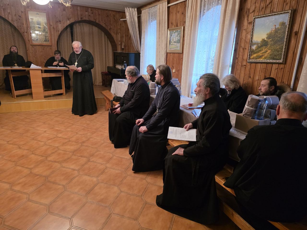 По окончании совещания состоялся пастырский семинар на тему «Организация помощи больным, престарелым и нуждающимся на приходе», на котором с докладом выступил настоятель Покровского храма д. Алексино, протоиерей Вадим Владышевский.