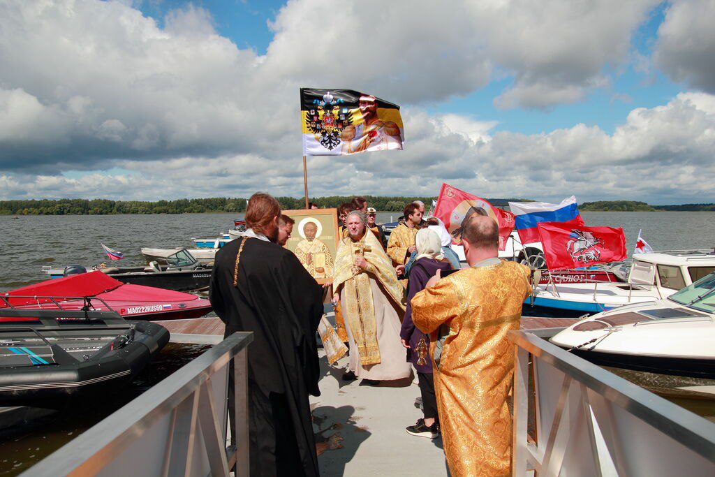Затем на 6 катерах с иконой святителя Николая совершили крестный ход по акватории Истринского водохранилища. По ходу движения была сделана остановка. Катера причалили к отелю «Мистраль», где к богомольцам присоединились настоятель Борисоглебского храма села Куртниково протоиерей Димитрий Шмелев, духовник ассоциации «Клуб Русская морская традиция», и настоятель Никольского храма города Истра протоиерей Виталий Пелишенко.