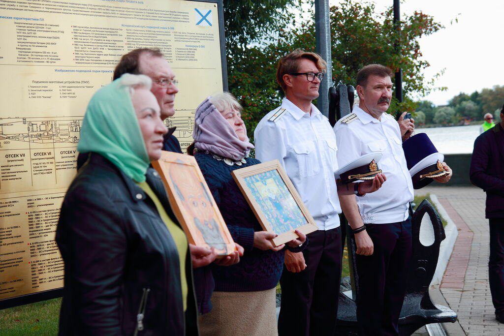 Специально для поминовения были привезены 4 иконы, на которых изображены Спаситель, Божия Матерь, равноапостольный Князь Владимир и свт. Николай, обрамляемые фотографиями погибших моряков. Для молитвенного поклонения верующих была принесена точная копия Годеновского креста с частичкой мощей свт. Николая. Протоиерей Николай Ельчев и протоиерей Димитрий Шмелев обратились к собравшимся с пастырским словом. В завершение все собрались за общей трапезой и высказали пожелание сделать такой крестный ход ежегодным.