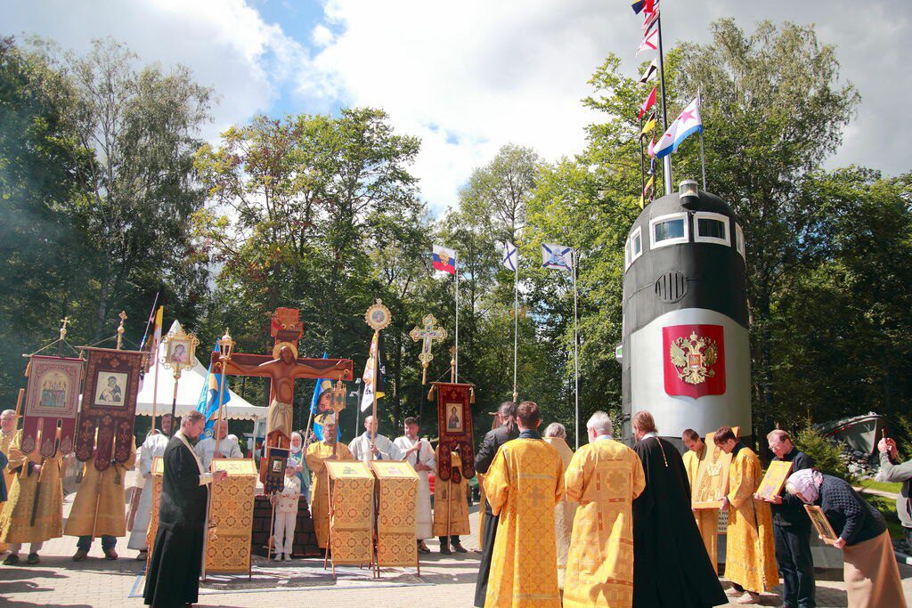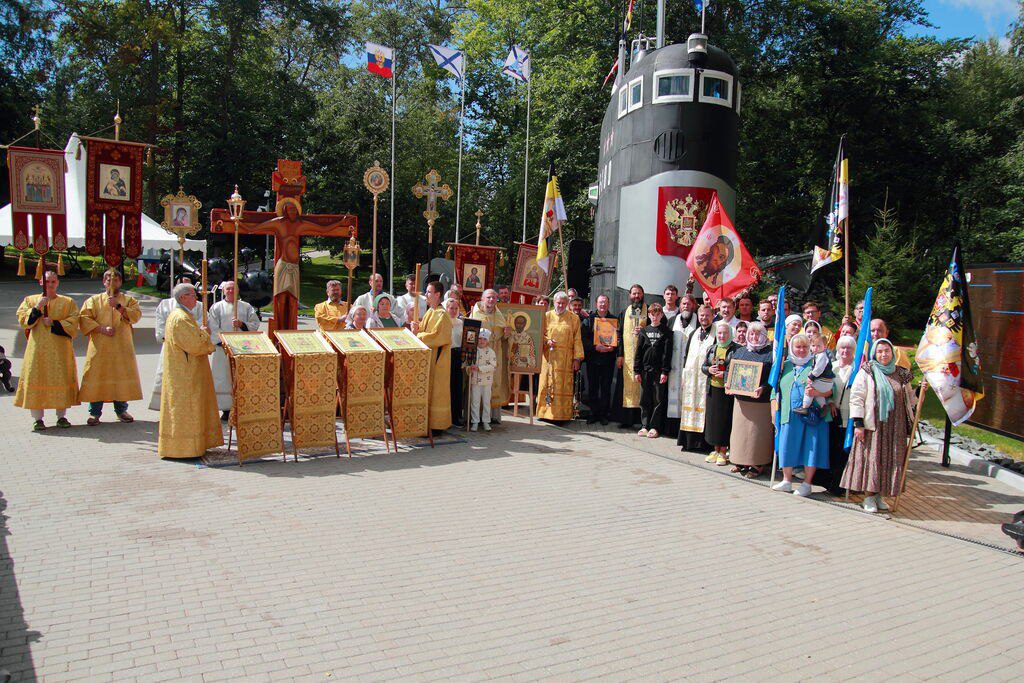 Все вместе молящиеся проследовали крестным ходом к музейной экспозиции ВМФ под открытым небом, где совершили молебен святителю Николаю и заупокойную панихиду о погибших 118 моряках подводников АПЛ «Курск» и 14 моряках АС-12 «Лошарик». Священнослужители помянули поименно всех моряков. 24 года назад в этот день произошла трагедия: в Баренцевом море затонул К-141 «Курск».