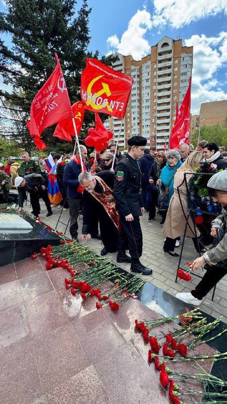 9 мая в рамках епархиальной молодежной акции «Ваш Подвиг в наших сердцах» воспитанники и курсанты клуба «Рубеж» Серафимовского храма п. Селятино Наро-Фоминского округа вместе со своими наставниками приняли участие в торжественном митинге и возложении цветов к Мемориалу павшим воинам в п. Селятино.