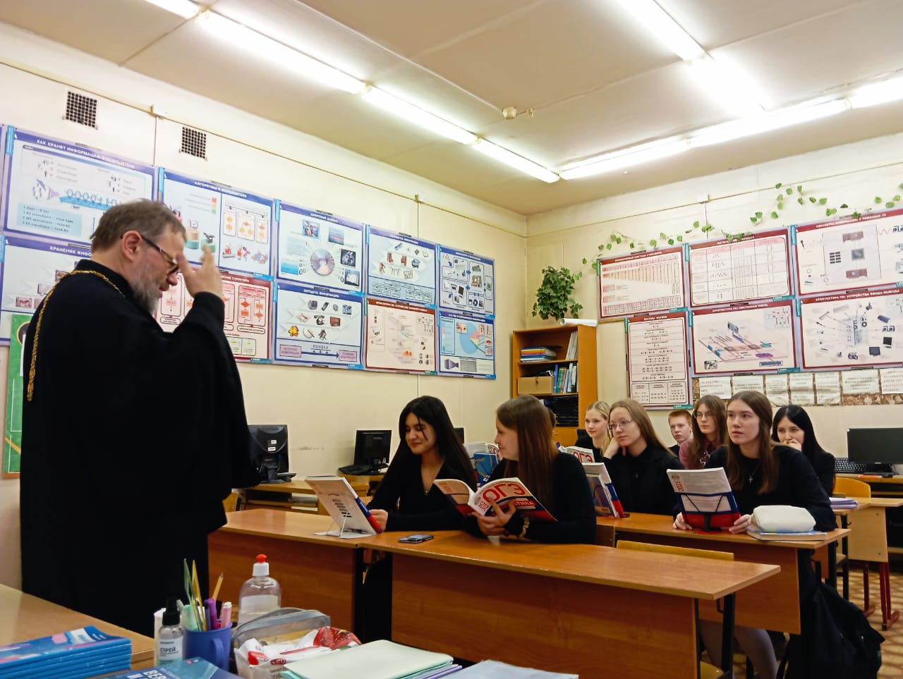 1 апреля клирик Знаменского храма г. Красногорска иерей Сергий Генченков посетил оба корпуса Гимназии №7 им. Д. П. Яковлева г. Красногорска. С ребятами из 9 “Б” второго корпуса священник Сергий поделился своими мыслями о Боге и Его творении, о любви и целомудрии. Затем иерей Сергий посетил первый корпус и побеседовал с учащимися 10-х классов. Обе встречи прошли в положительном ключе.