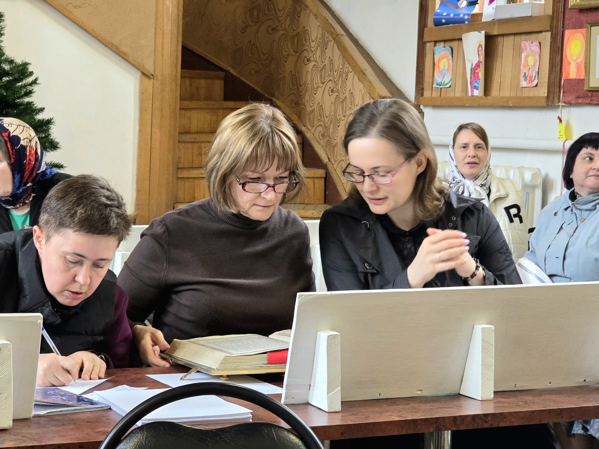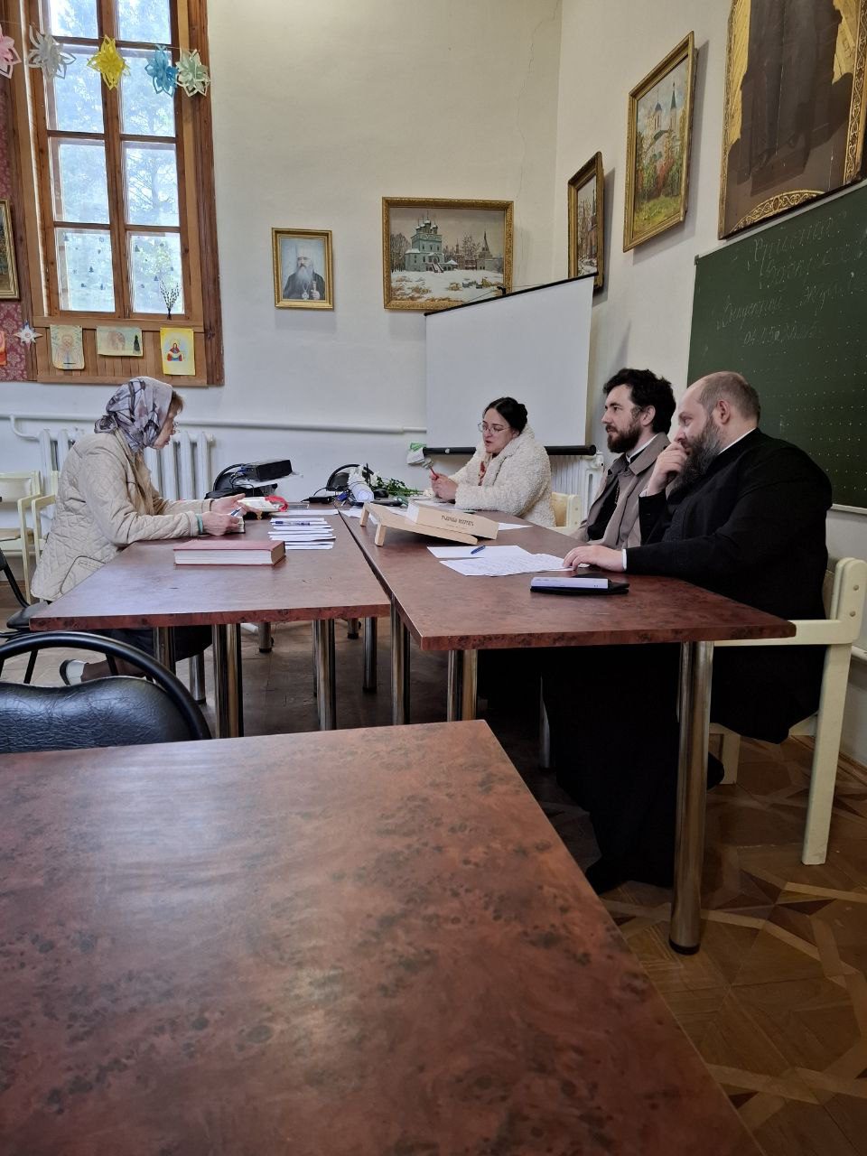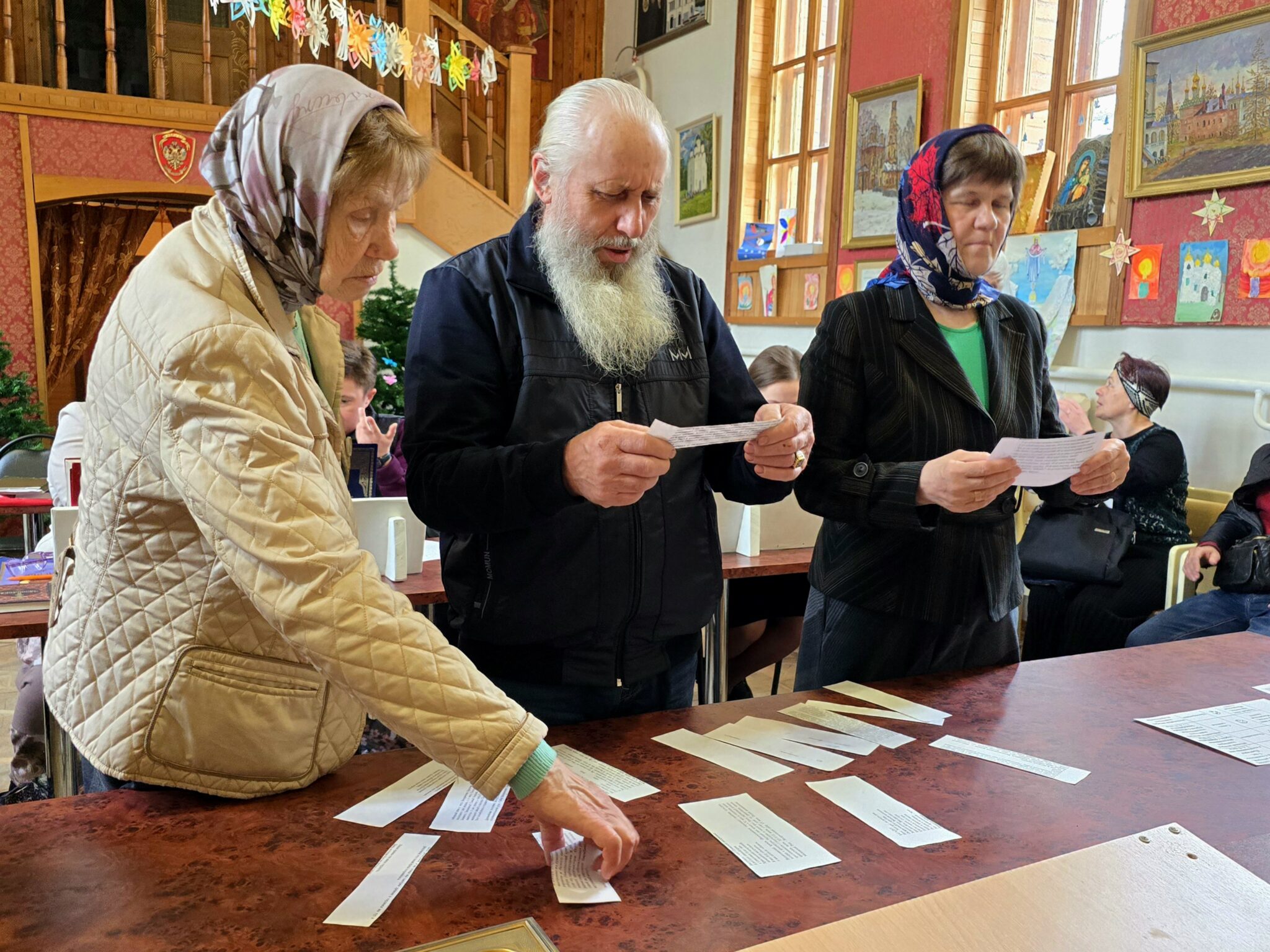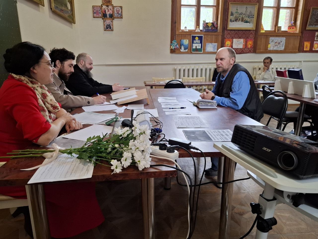 Экзамен у слушателей принимал священник Михаил Завитаев, член Епархиального отдела религиозного образования и катехизации, а также преподаватели курсов: священник Борис Зинин и Наталья Васильевна Григорьева.