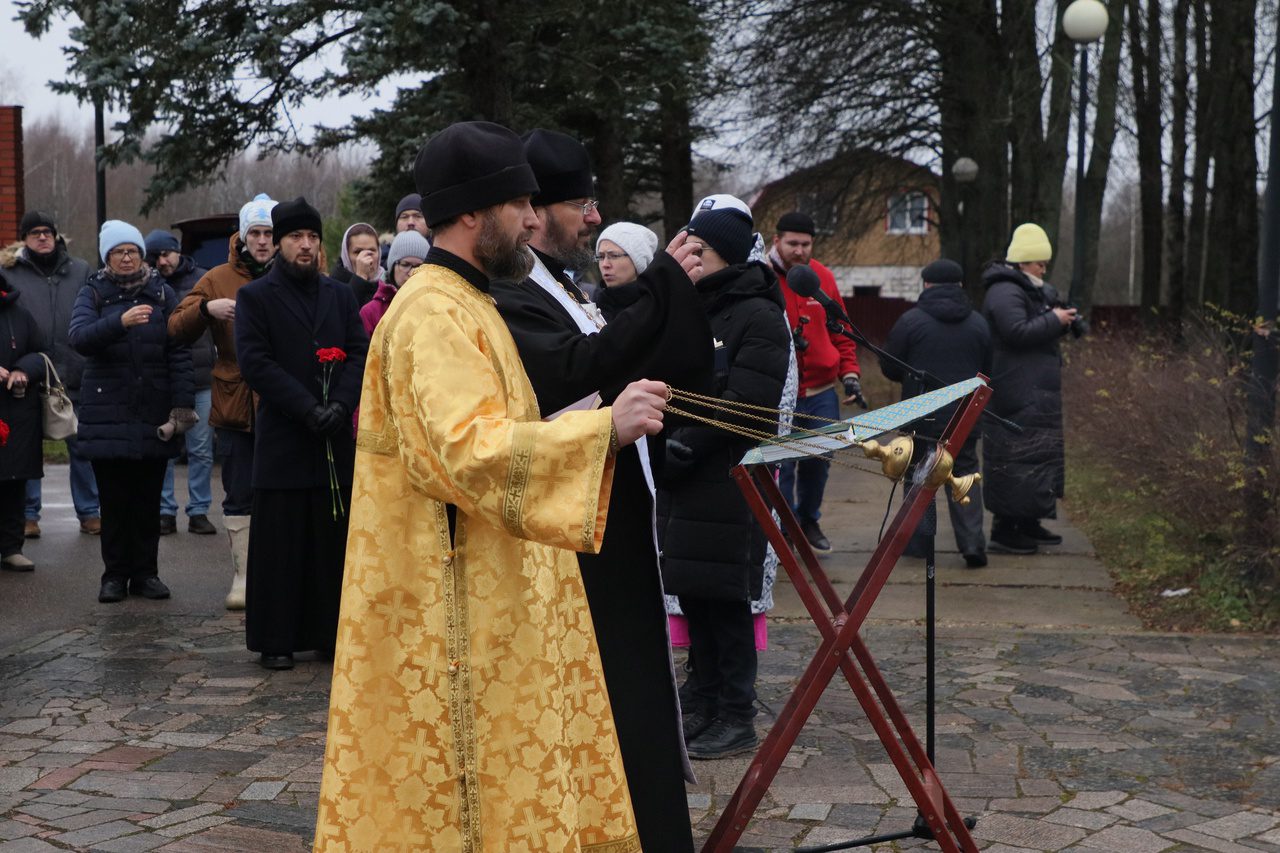 К собравшимся обратился протоиерей Герман Григорьев, благочинный Волоколамского округа. В конце мероприятия от Русской Православной Церкви был торжественно возложен венок, заказанный на средства приходов Волоколамского благочиния. По окончании торжественного митинга на могиле героев-панфиловцев в д.Нелидово была совершена заупокойная лития.