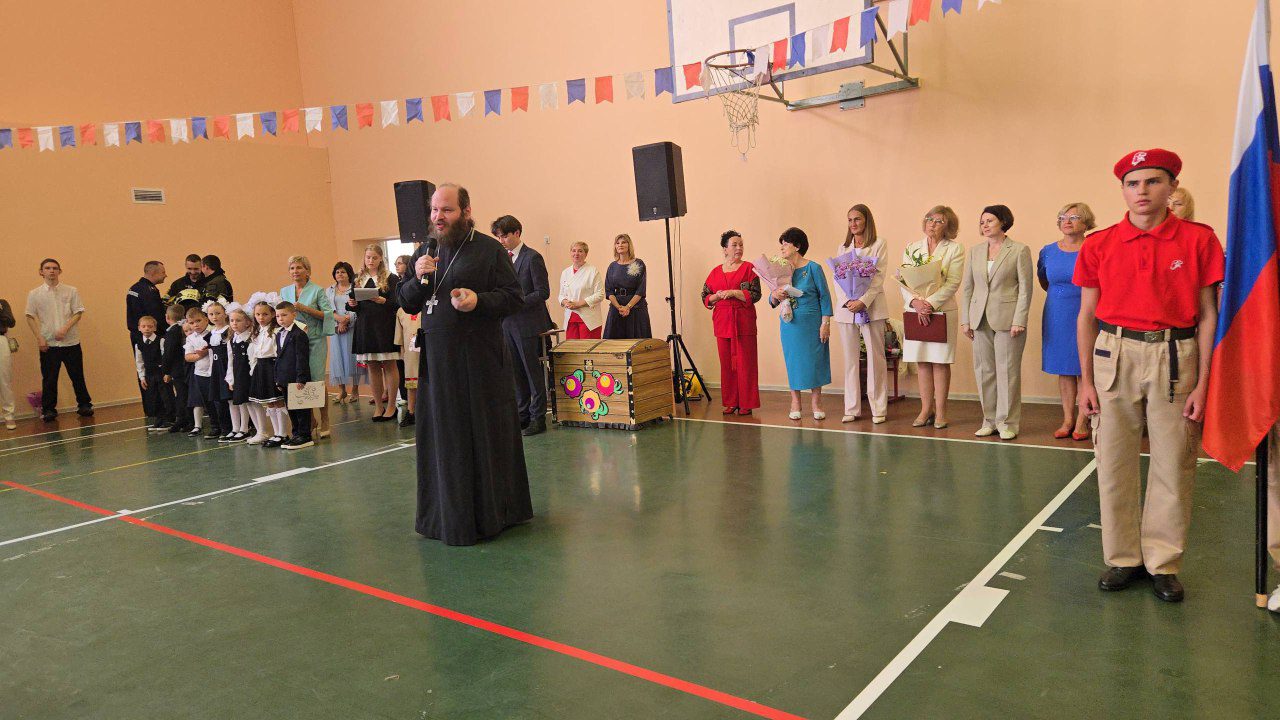 1 сентября в Гимназии №4 пос. Нахабино прошла праздничная линейка, в которой принял участие настоятель Георгиевского храма пос. Нахабино иерей Павел Островский.