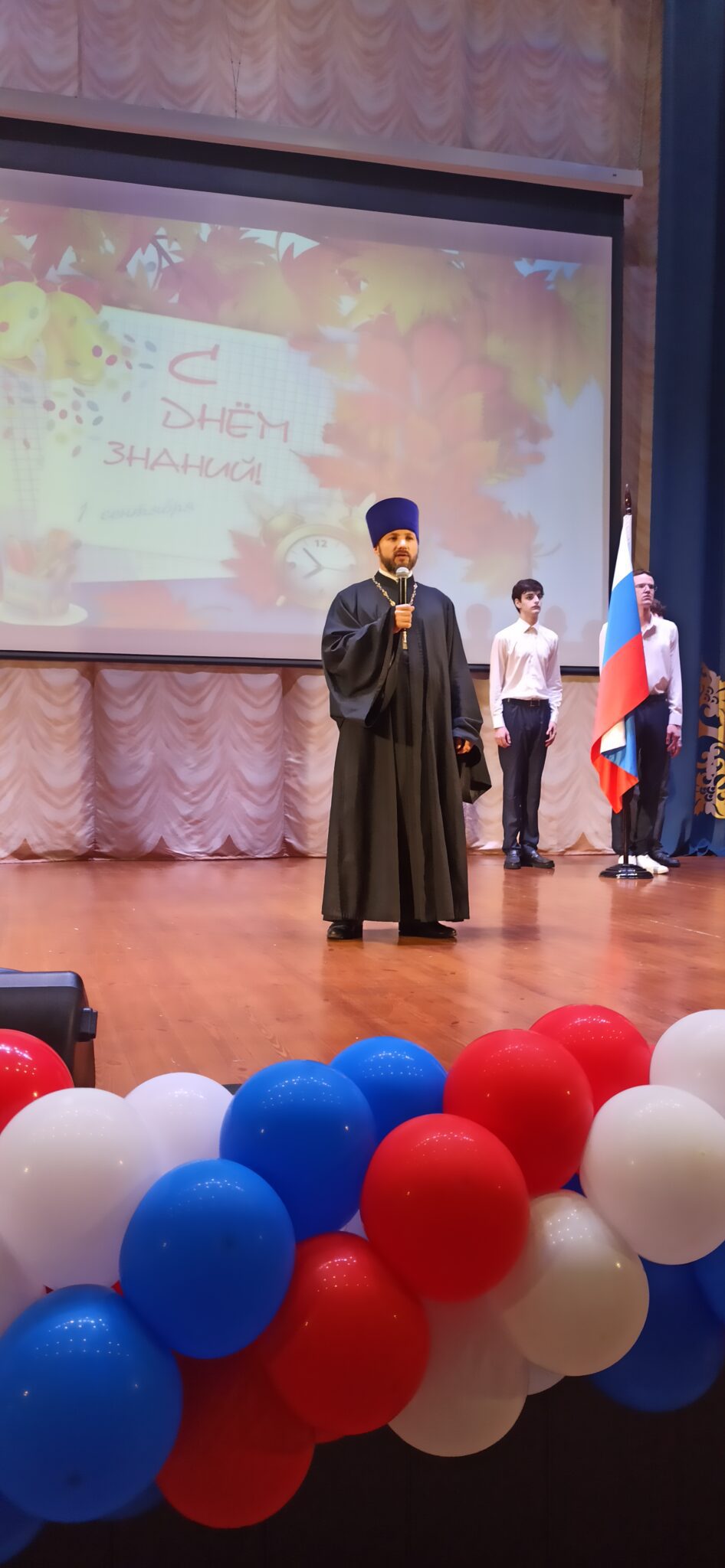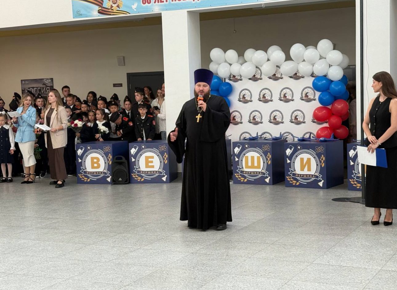 Клирик храма Архангела Михаила иерей Алексий Федоровский принял участие в торжественном мероприятии в честь Дня знаний в средней школе “Мозайка”.