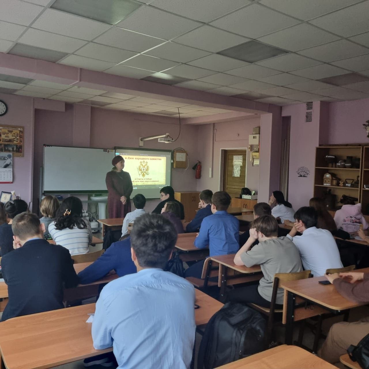 Школьники узнали о духовных и исторических основах праздника, о роли Патриархов Русской Православной Церкви и героических страницах отечественной истории. Главный вывод встречи — сила народа заключается в его единстве и вере.