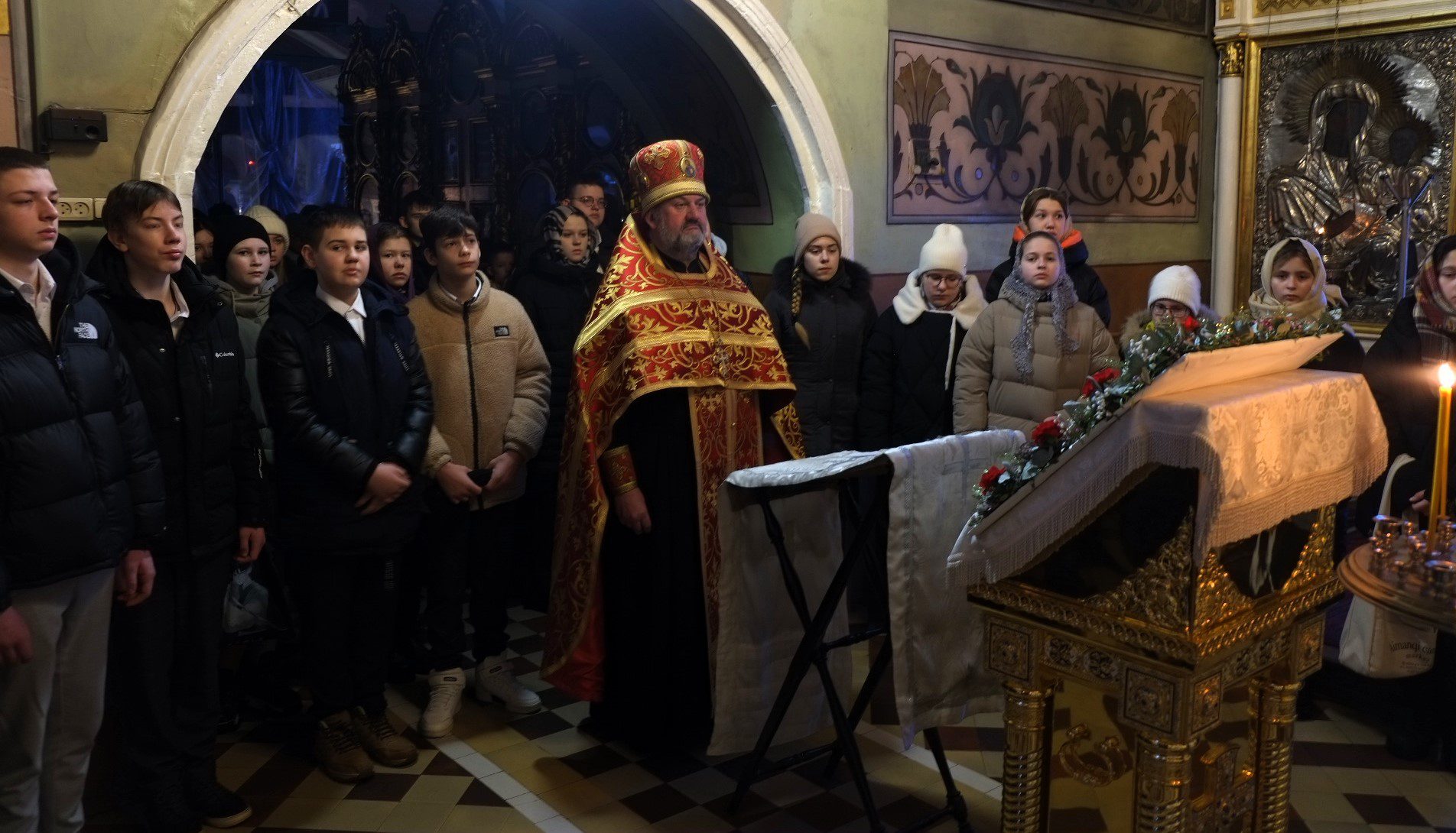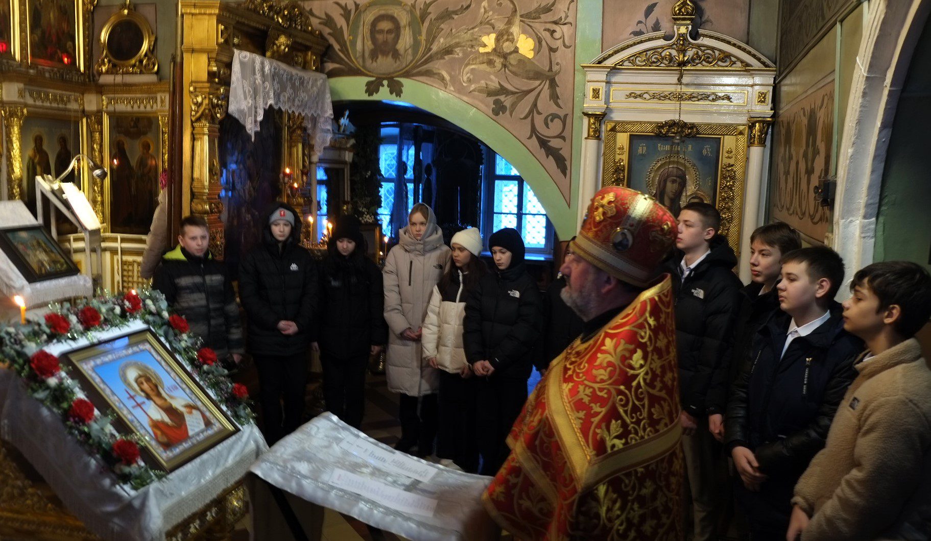 После целования Креста Господня, отец Николай в общении с гимназистами, ответил на их различные вопросы о Православии.