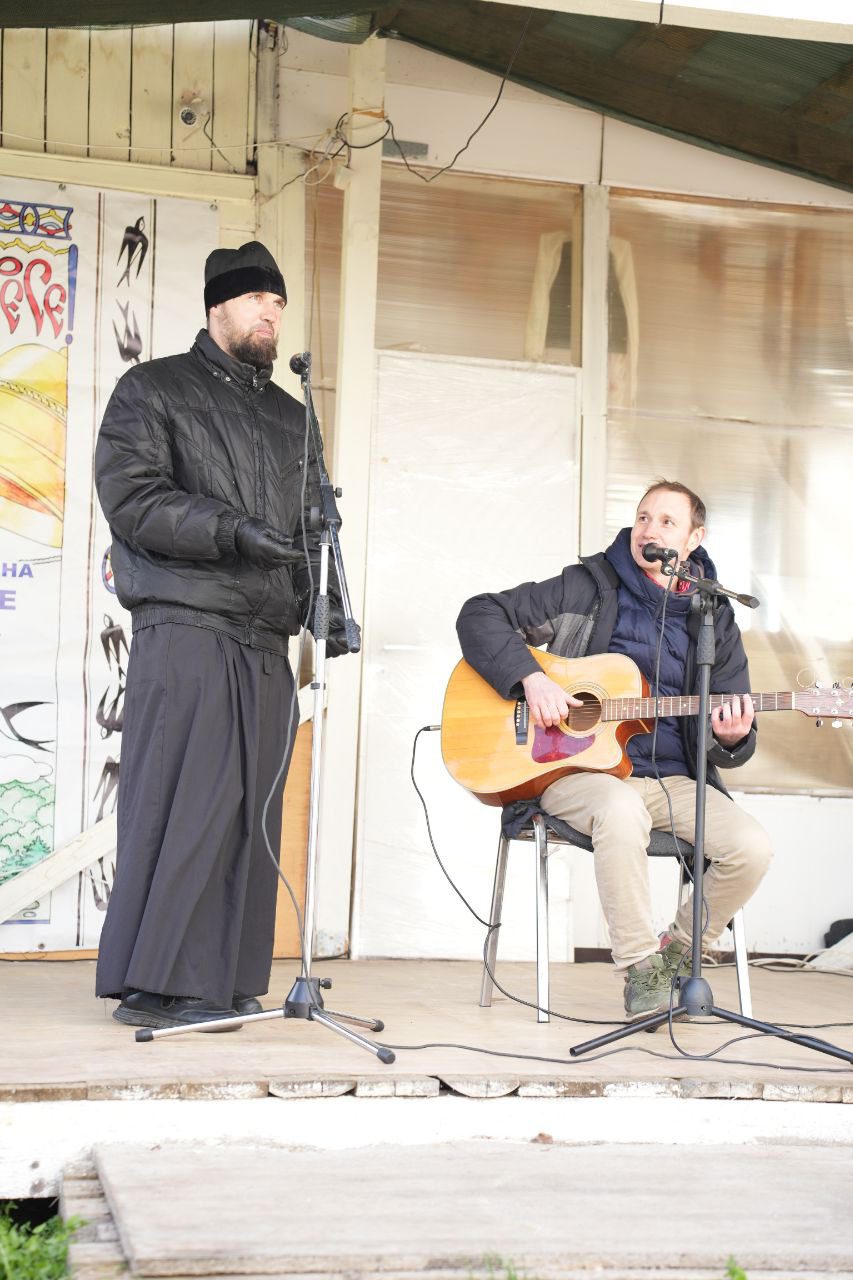 Музыкальную часть фестиваля представил Евгений Баллад. Его проникновенные песни нашли отклик в сердцах всех слушателей. А в подтверждение слов одной из них — «Самолёты» — в небе действительно появился АН-2! Самолет с иконой Казанской Божией Матери совершил три круга над храмом, став ярким моментом праздника.