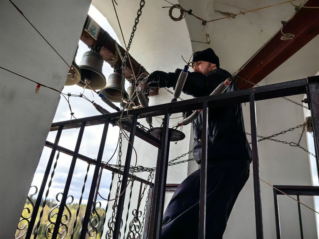 Звонарь храма Тимур Ивочкин исполнил Пасхальный звон и рассказал гостям о неизвестных страницах истории храма Казанской иконы Божией Матери.