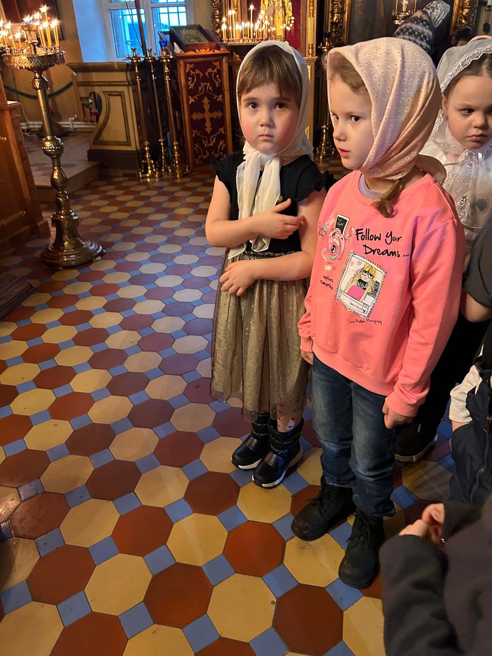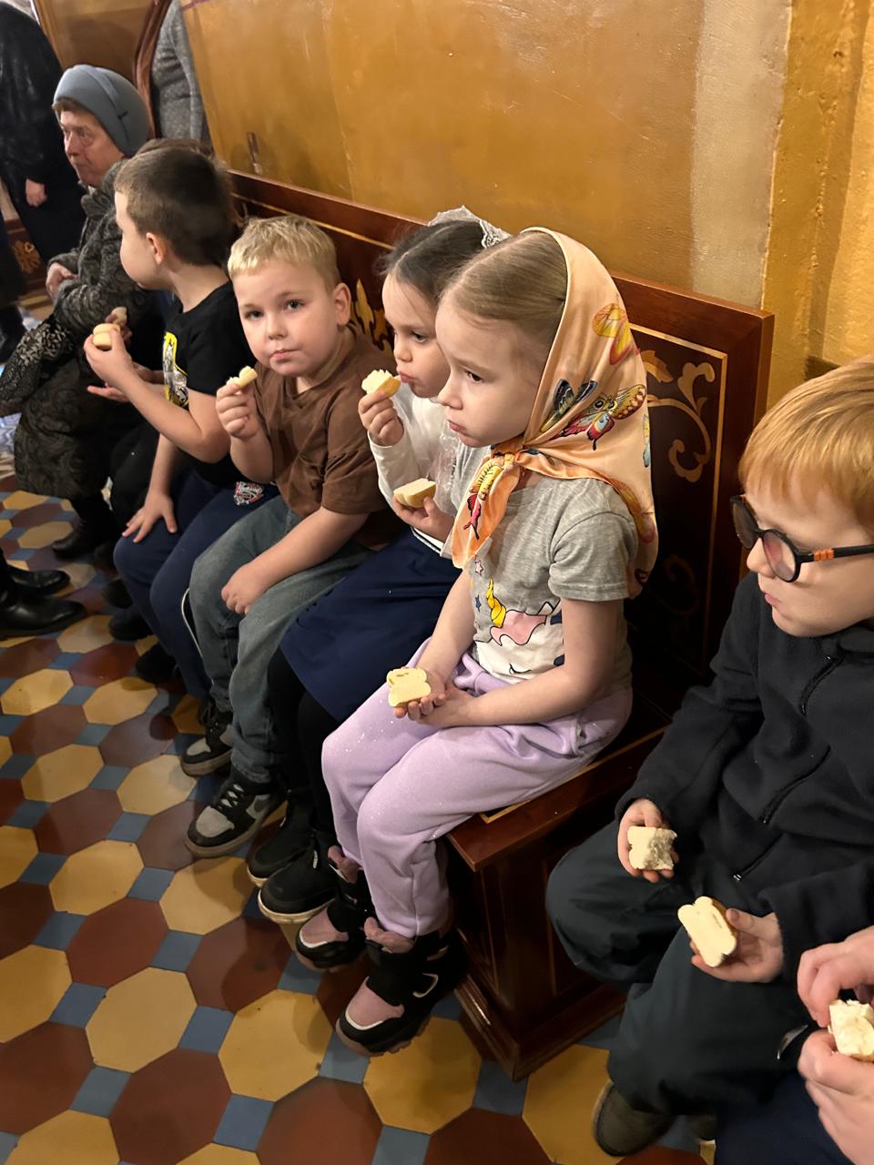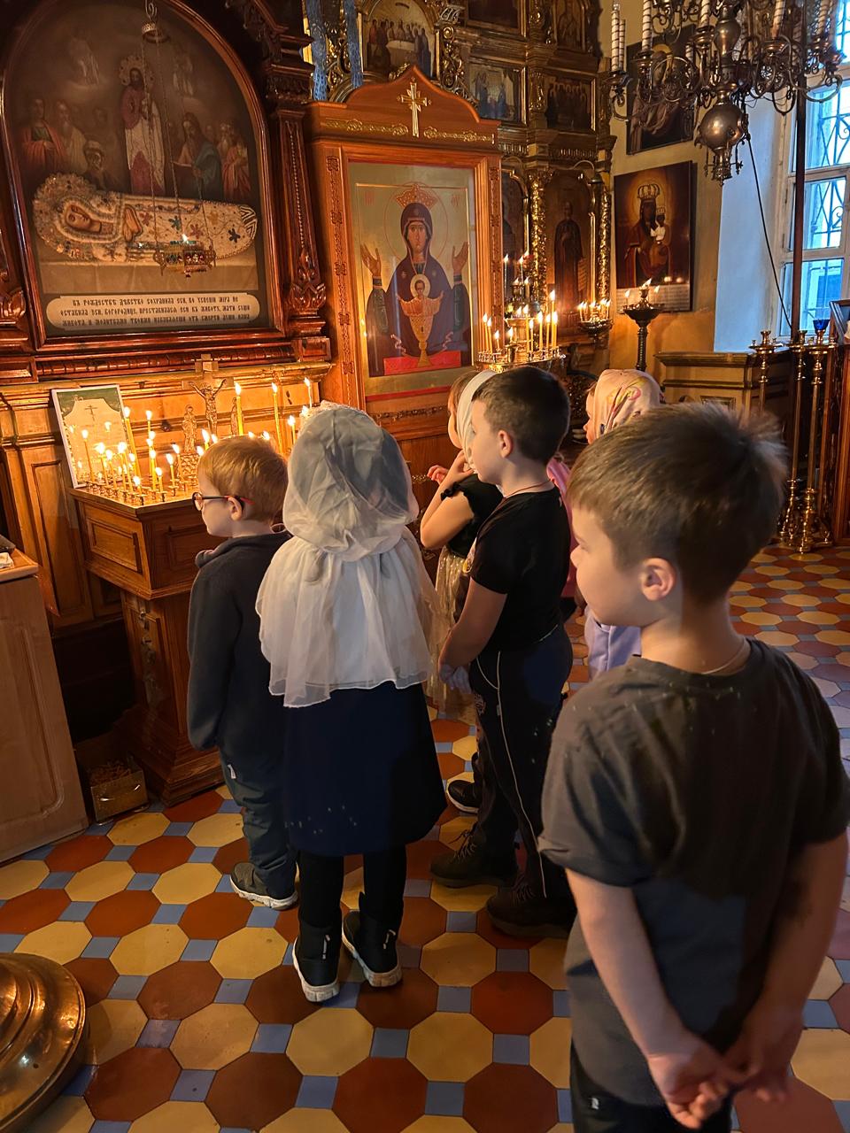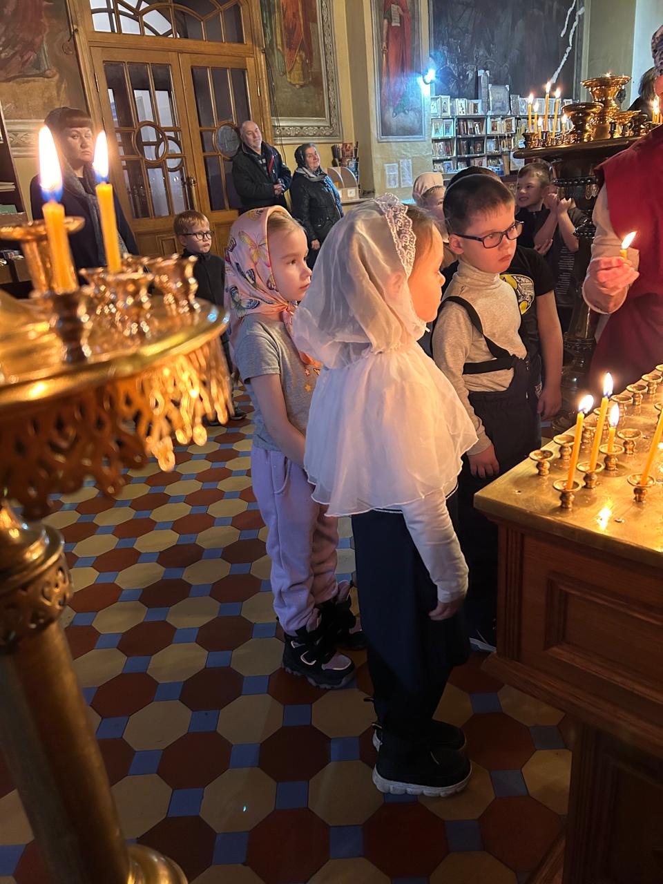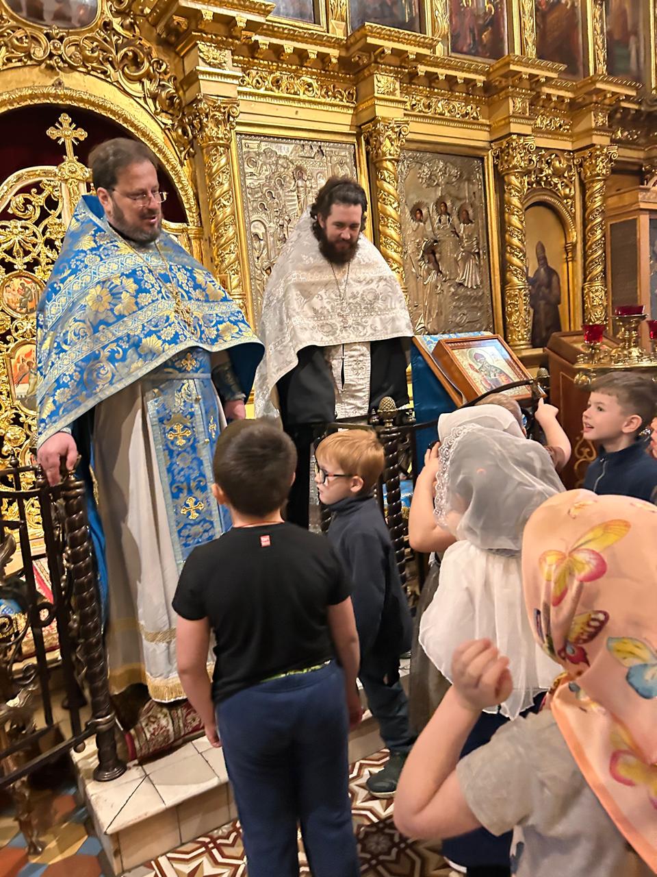 Дети помолились на Божественной литургии и причастились Святых Христовых Таин.