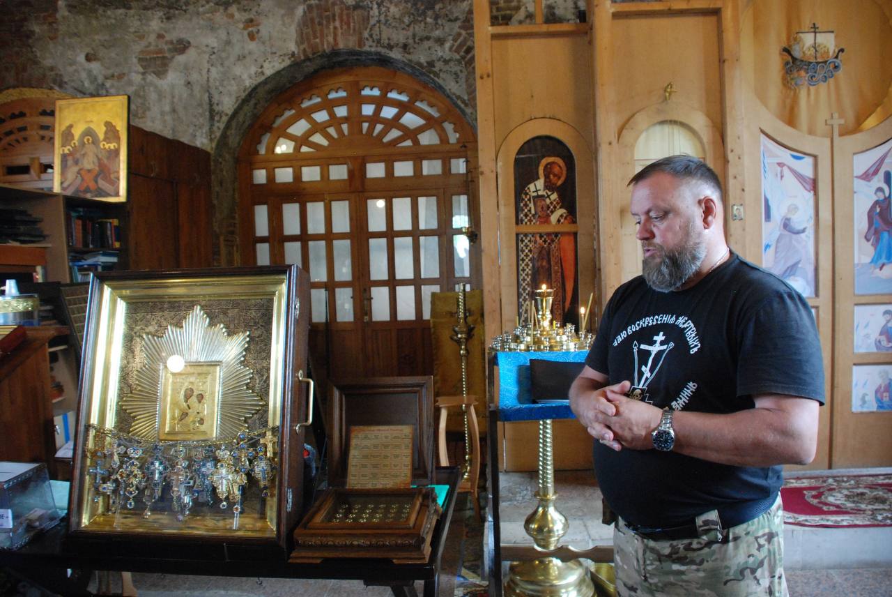 По окончанию богослужения, старший смены есаул Дмитрий Дороднов рассказал краткую историю образа, после чего, к святыне смогли приложиться все желающие.