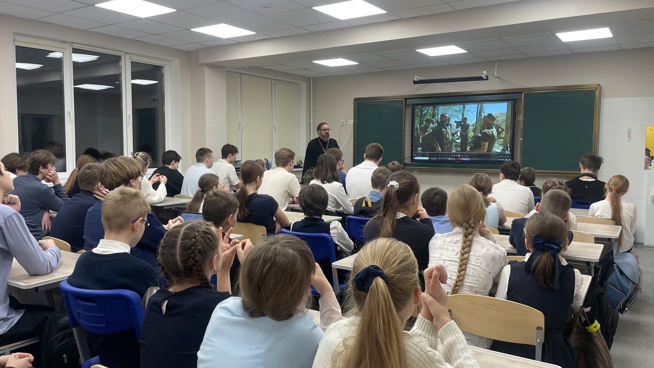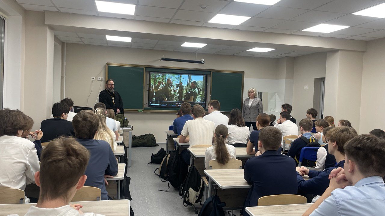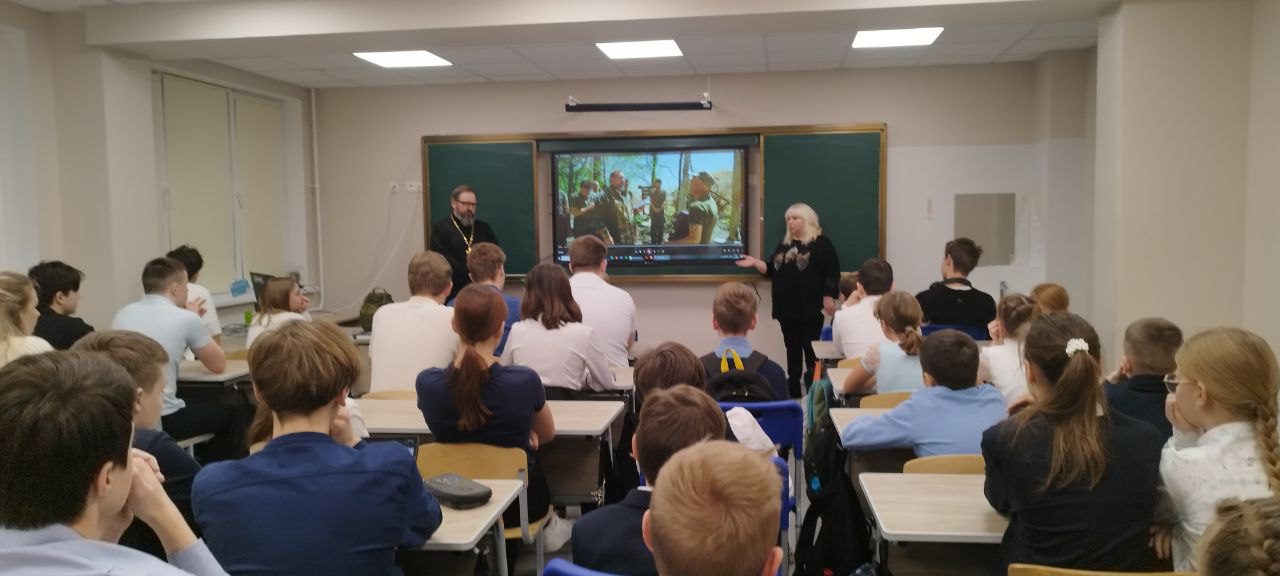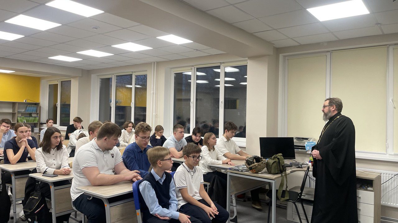 1 декабря, в рамках проведения Московских областных Рождественских образовательных чтений в 5 и 10 классах МОУ «Лицей г. Истра» прошел классный час “Вера на СВО». В классном часе, принял участие настоятель Мироносицкого храма г. Истра священник Павел Малкин.