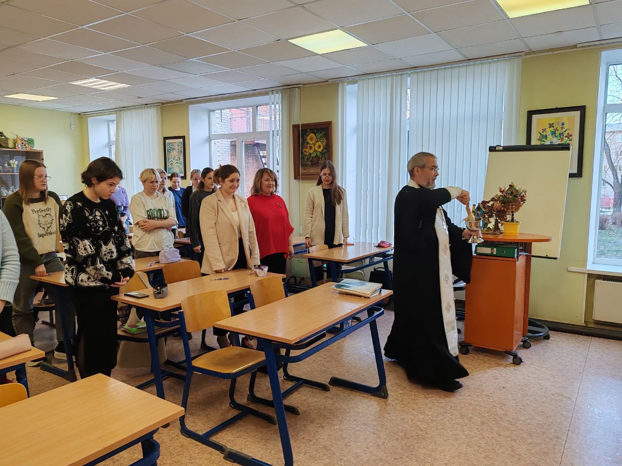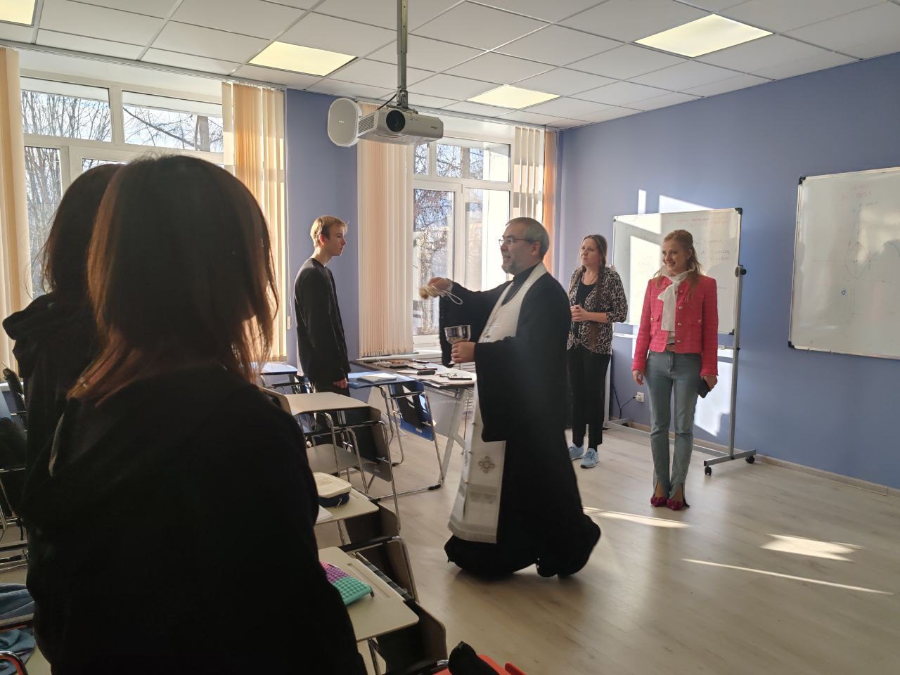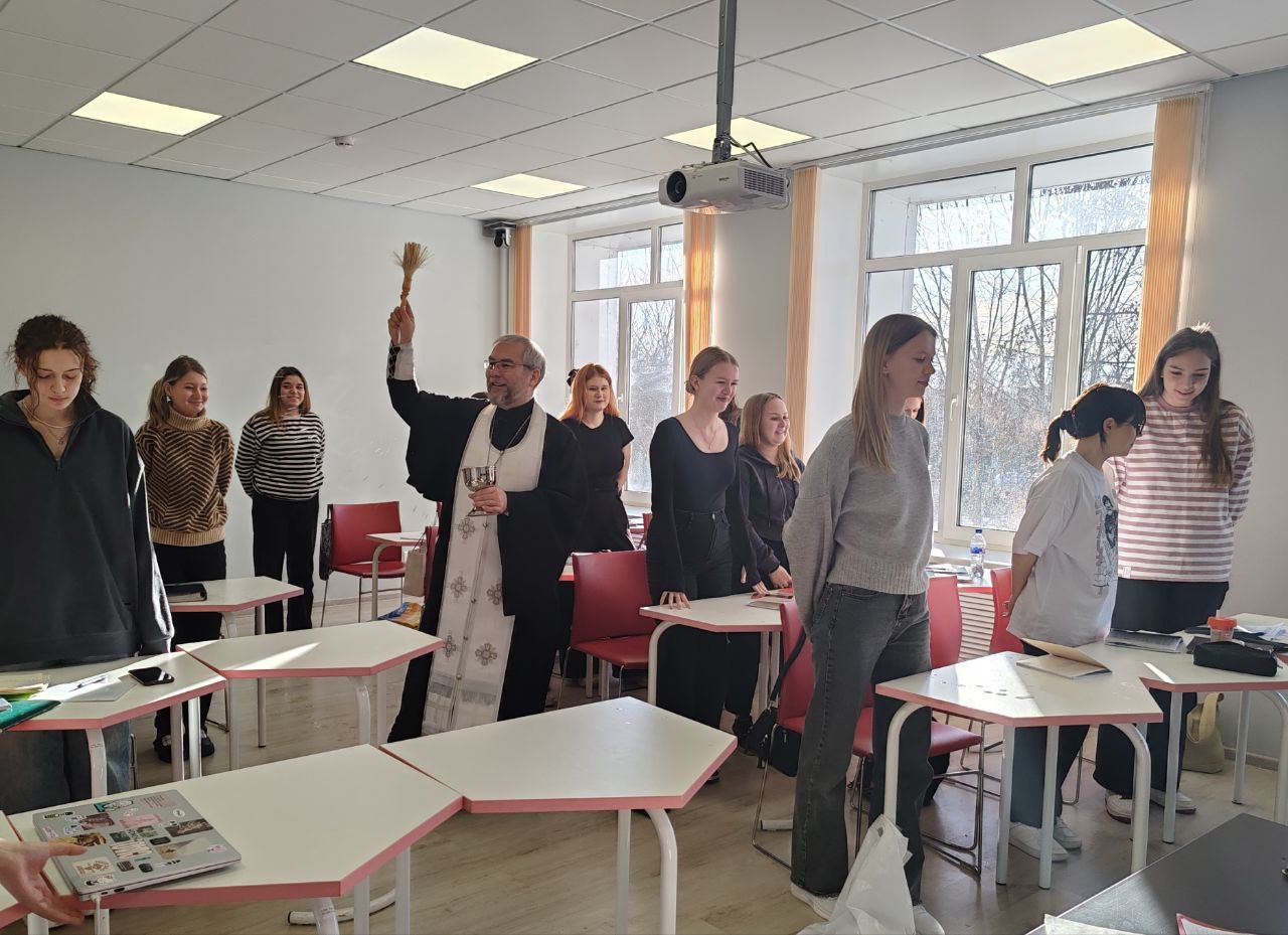 Отец Максим вместе с руководством и преподавателями колледжа совершил краткий праздничный молебен, рассказал о смысле праздника Богоявления, после чего окропил крещенской водой всех желающих, а также учебные аудитории и служебные помещения колледжа.