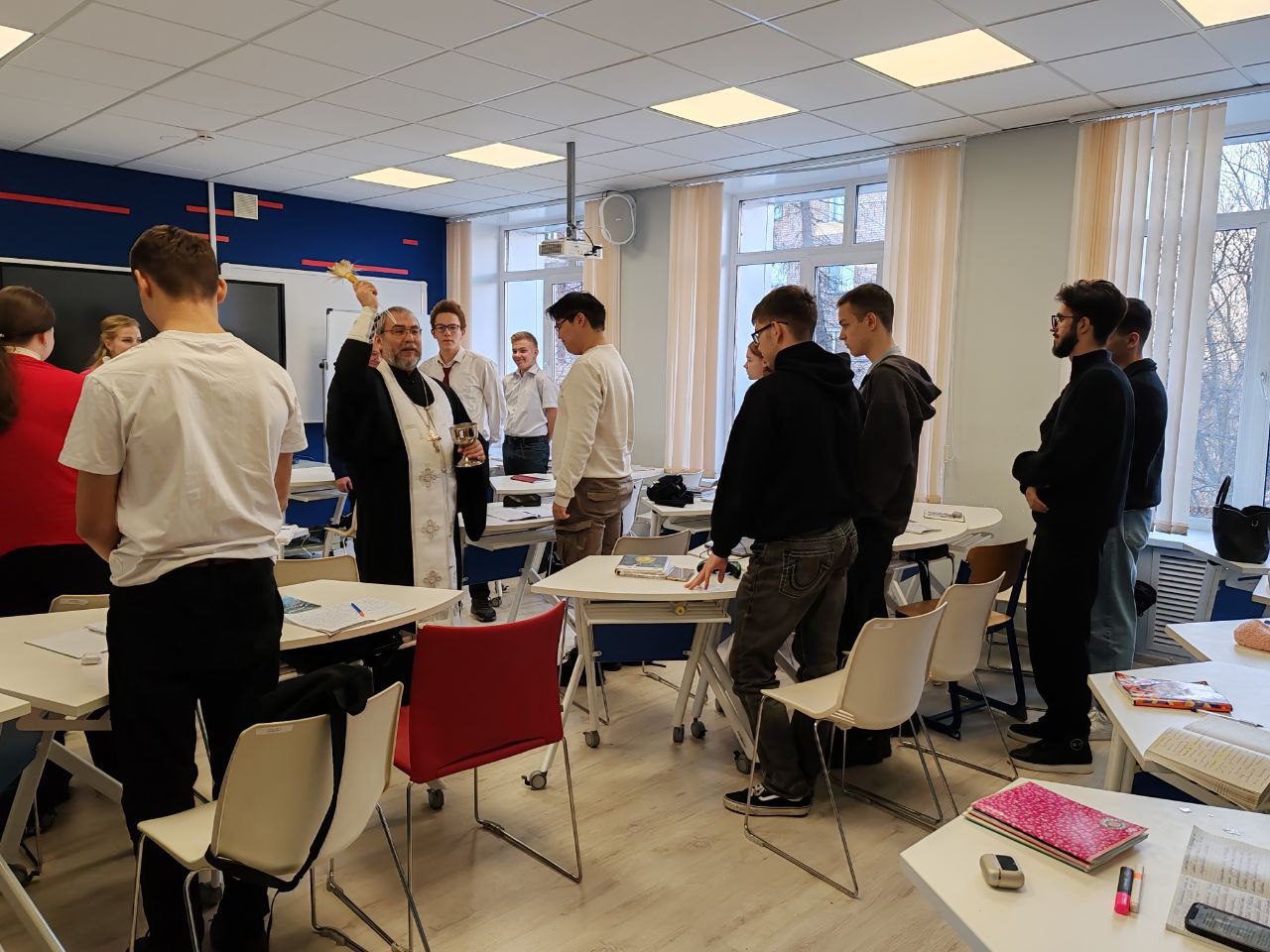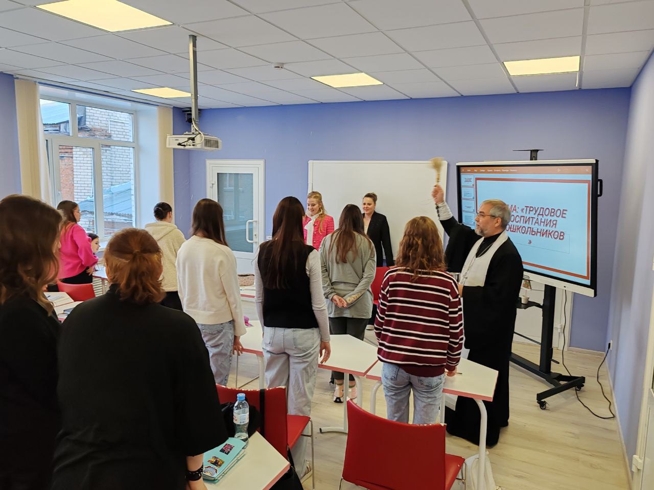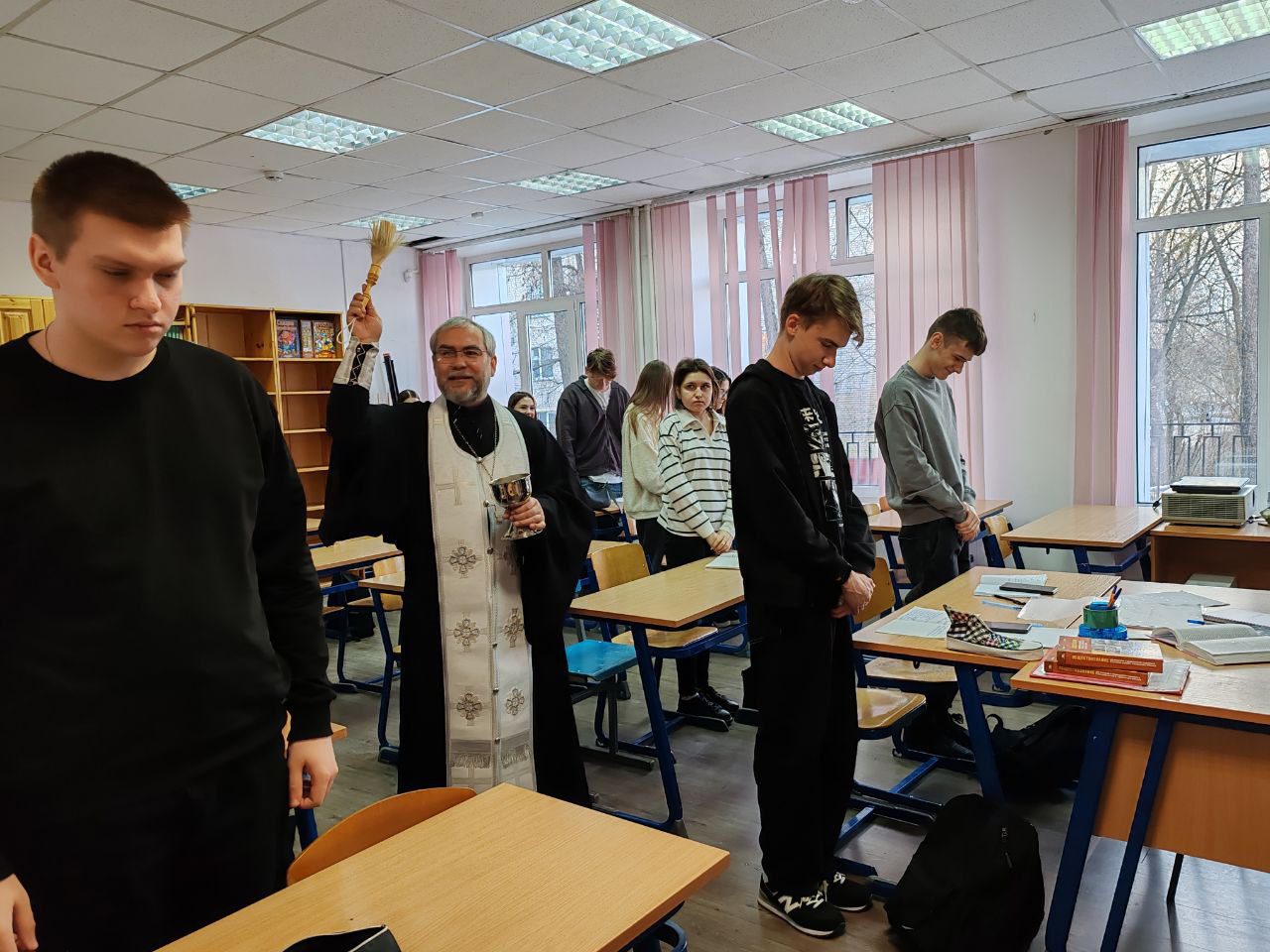 Отец Максим вместе с руководством и преподавателями колледжа совершил краткий праздничный молебен, рассказал о смысле праздника Богоявления, после чего окропил крещенской водой всех желающих, а также учебные аудитории и служебные помещения колледжа.