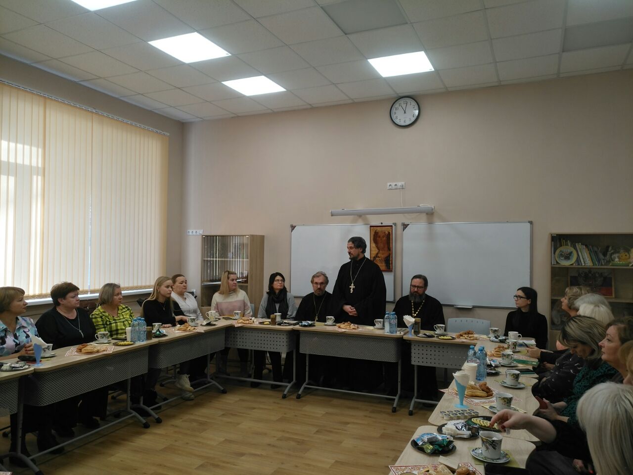 22 ноября в рамках осуществления согласованного плана мероприятий Рождественских чтений между Управления образованием г.о. Истра и Истринского благочиннического округа был организован круглый стол с педагогами общеобразовательных организаций и воспитателями дошкольных учреждений г.о. Истра. Гостей радушно встретила Чеховская средняя школа города Истры.
