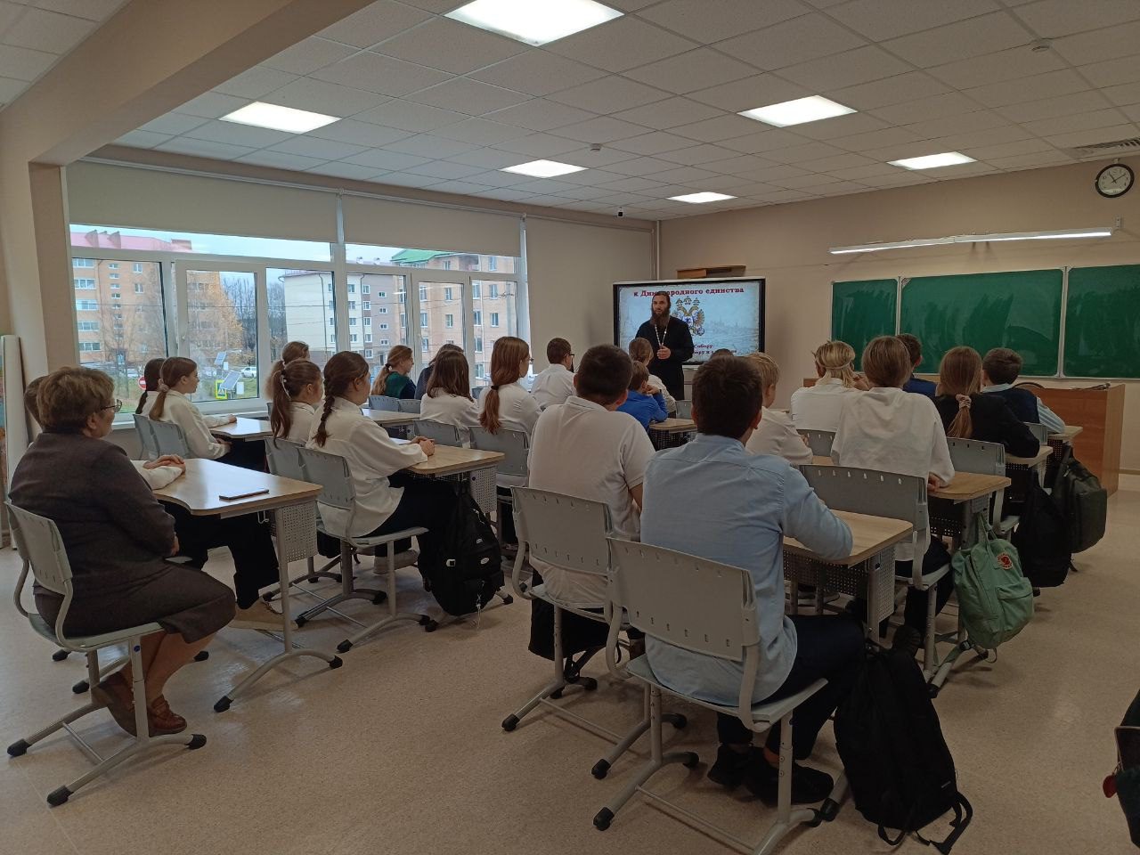 30 октября 2025 года благочинный Шаховского округа, настоятель Всехсвятского храма п. Шаховская протоиерей Александр Ковтун в преддверии празднования памяти Казанской иконы Божией Матери и Дня народного единства встретился с учениками 8 классов Шаховской гимназии.