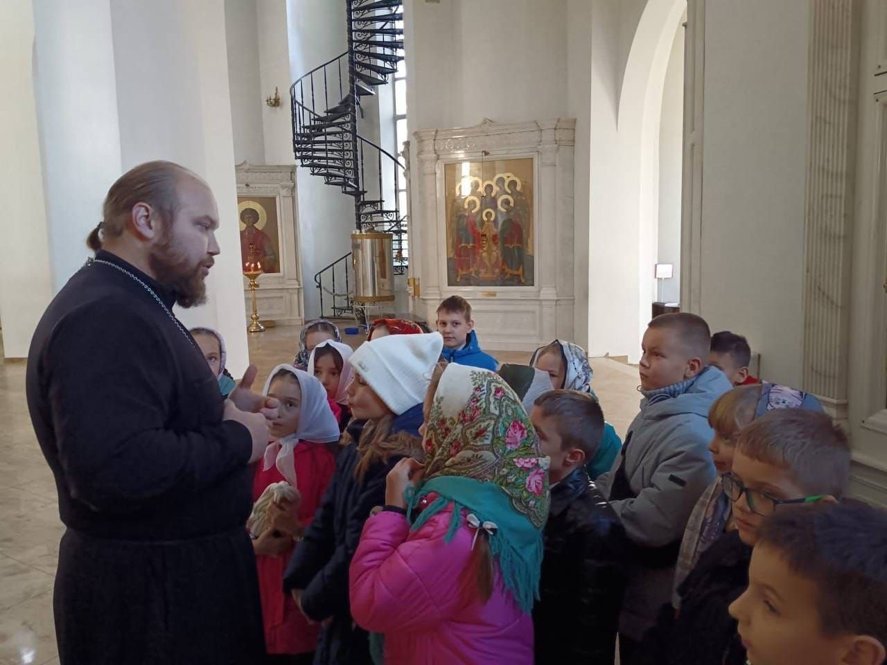 Для детей была проведена познавательная экскурсия, в ходе которой они узнали об устройстве православного храма, его символике и главных святынях. Особое внимание в беседе с ребятами было уделено смыслу и истории только что отмеченного праздника и его неразрывной связью с почитанием Казанской иконы Божией Матери.