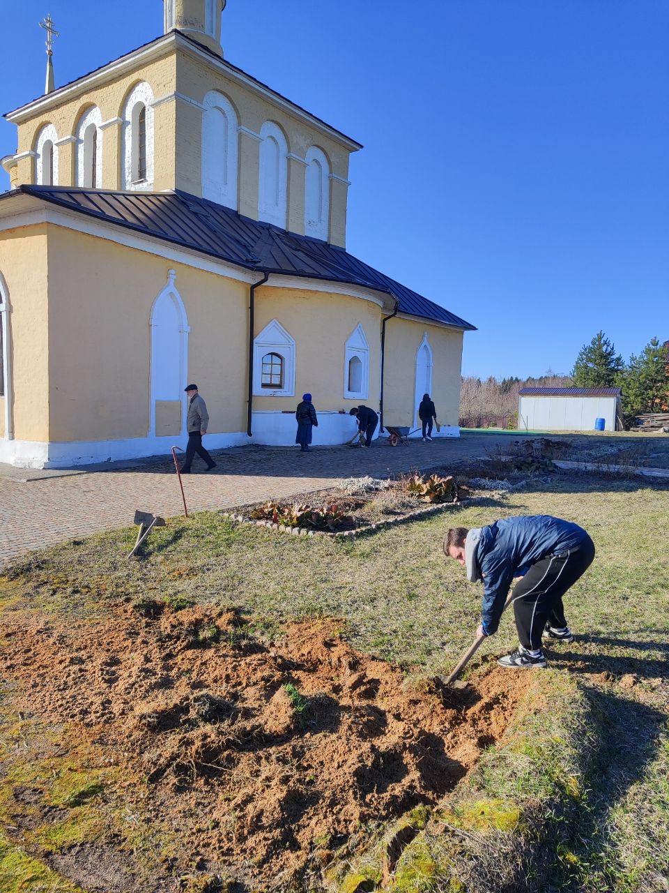А 2 апреля молодёжная группа волонтёров п. Колюбакино провела уборку на территории храма Рождества Богородицы. Вместе с настоятелем, протоиереем Олегом Ковалёвым, участники акции не только привели в порядок церковный двор, но и наметили дальнейшие мероприятия в рамках проекта.