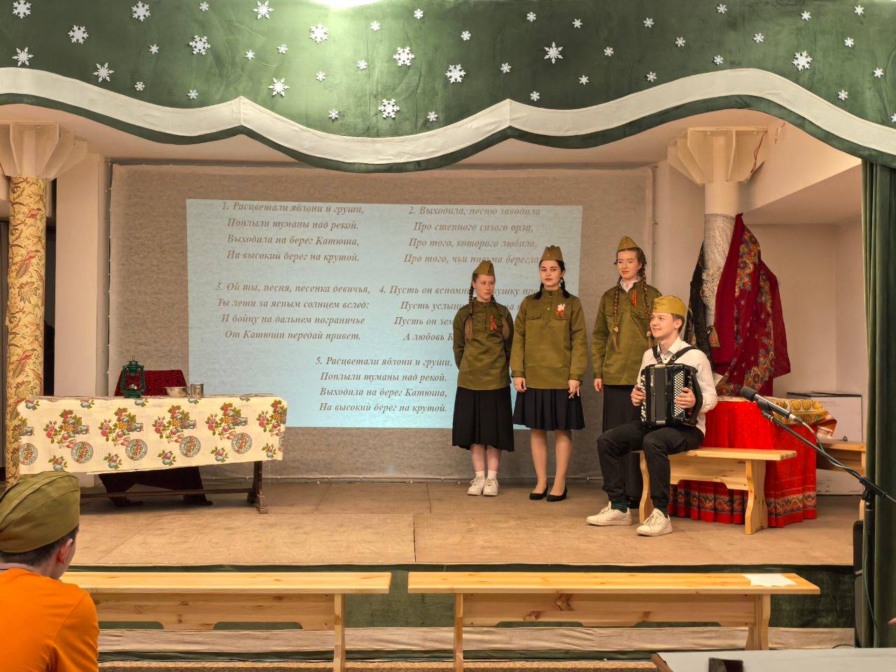 Участники от 11 до 20 лет вместе со взрослыми отвечали на исторические вопросы, разгадывали ребусы и анаграммы, а также читали стихи и исполняли песни военных лет.