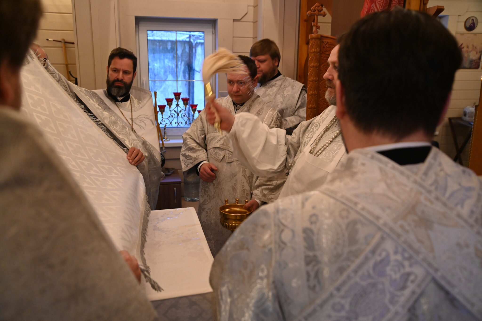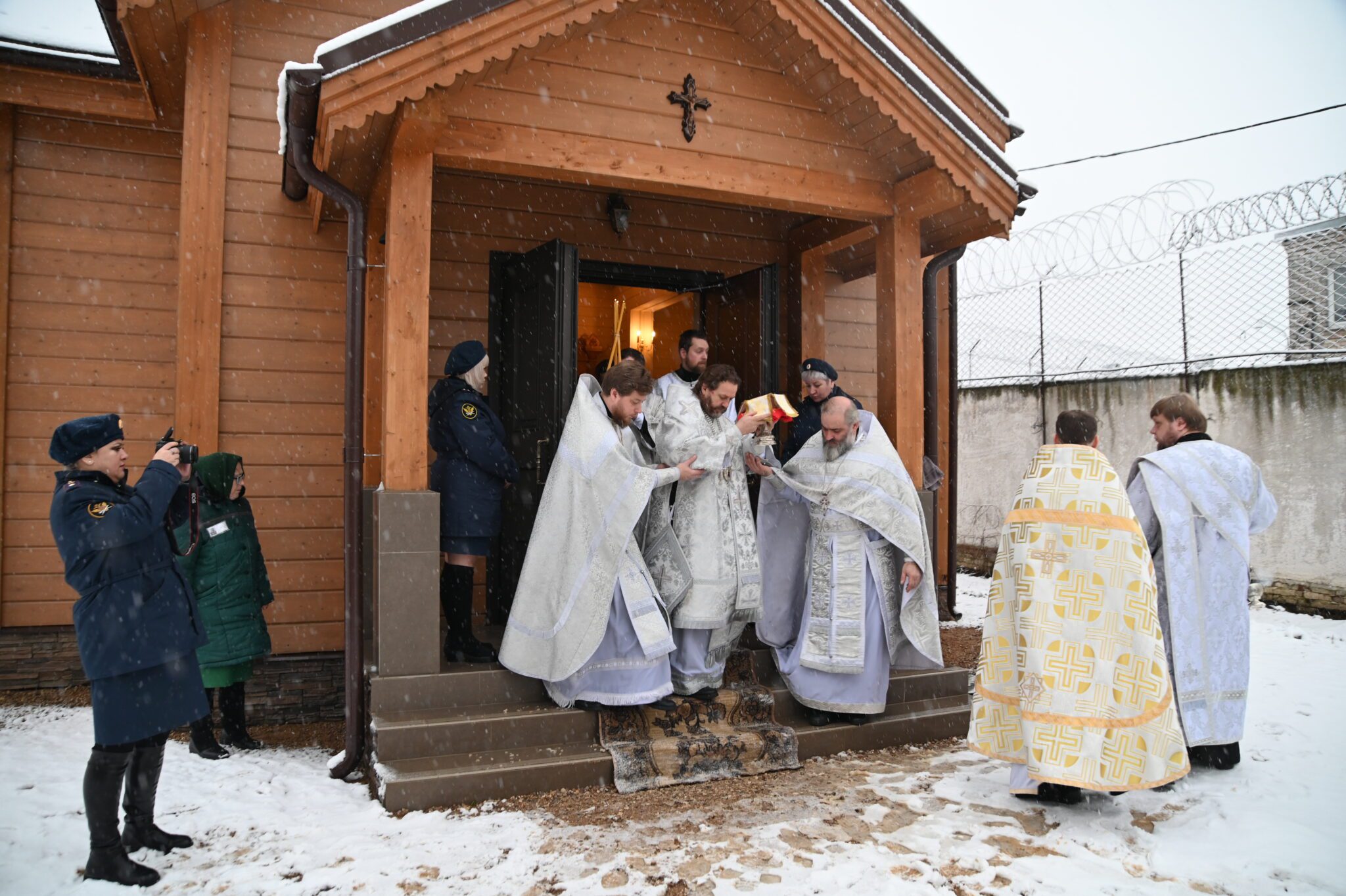 Его Высокопреосвященству сослужили благочинный Можайского церковного округа священник Иоанн Лобода, председатель Комиссии по тюремному служению Одинцовской епархии, помощник начальника ГУФСИН по организации работы с верующими, председатель Межъепархиального отдела по тюремному служению Московской митрополии священник Михаил Куземка, благочинный Яхромского церковного округа священник Сергий Бернацкий, духовник ИК-5 священник Роман Томилов и духовенство Одинцовской епархии.