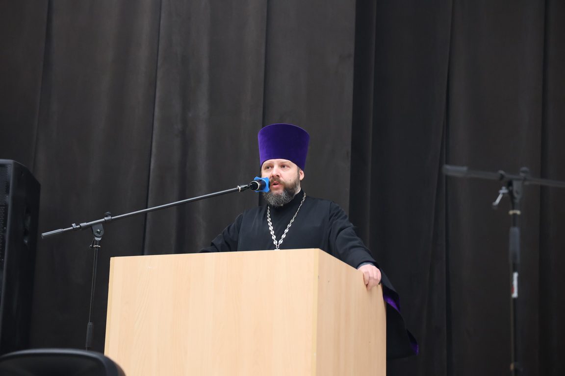 Традиционно священник Михаил Завитаев на сцене чтений подвел итоги благотворительных и социальных акций 2023 года, направленных на поддержку воинов Специальной военной операции СВО и людей, оказавшихся в зоне военного конфликта: