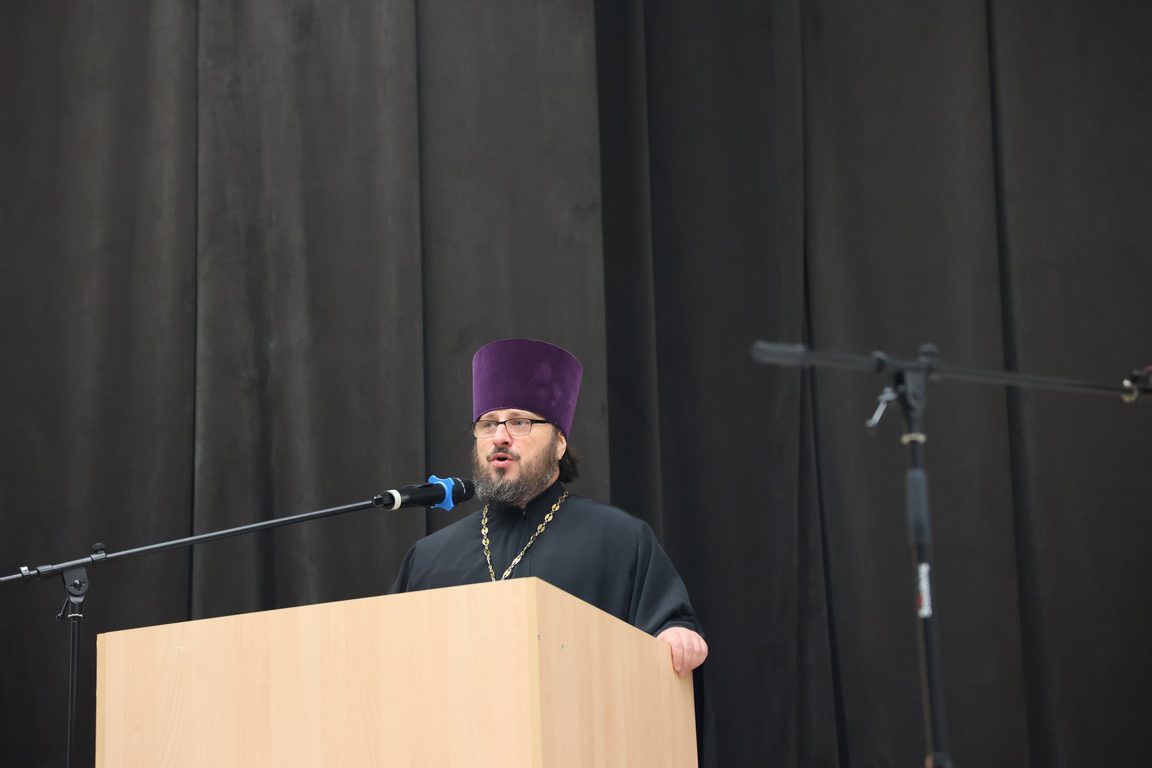 В зале собрались священнослужители, директора общеобразовательных школ и учителя, дети, выступавшие с творческими номерами и родители. Открыл образовательный форум его постоянный ведущий – заместитель благочинного, ответственный за религиозное образование и катехизацию священник Михаил Завитаев.