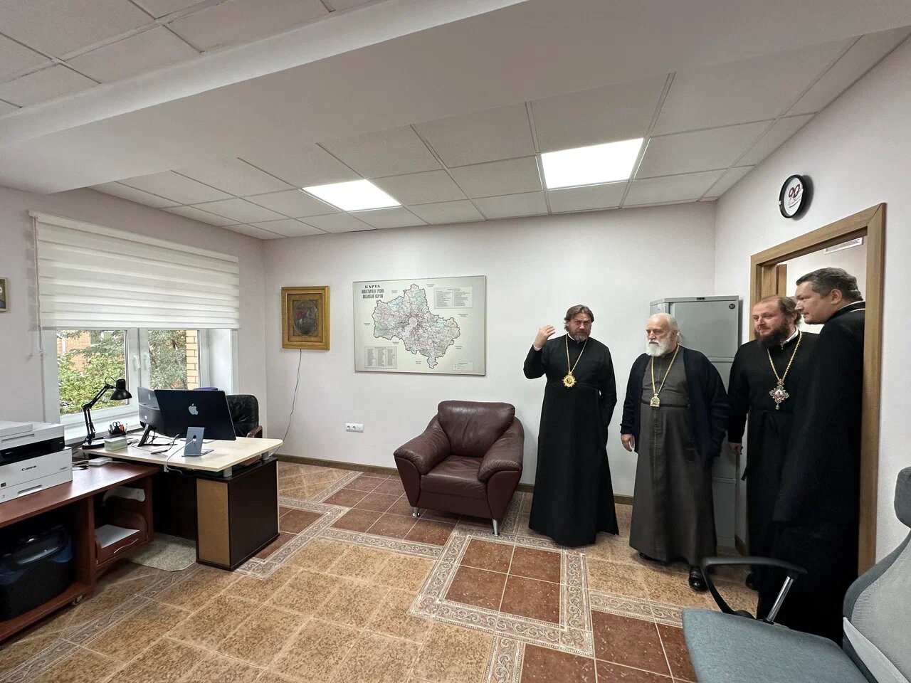 По окончании богослужения митрополит Павел, в сопровождении архиереев митрополии, посетил Одинцовское епархиальное управление и осмотрел помещения Православной средней общеобразовательной школы «Лествица».