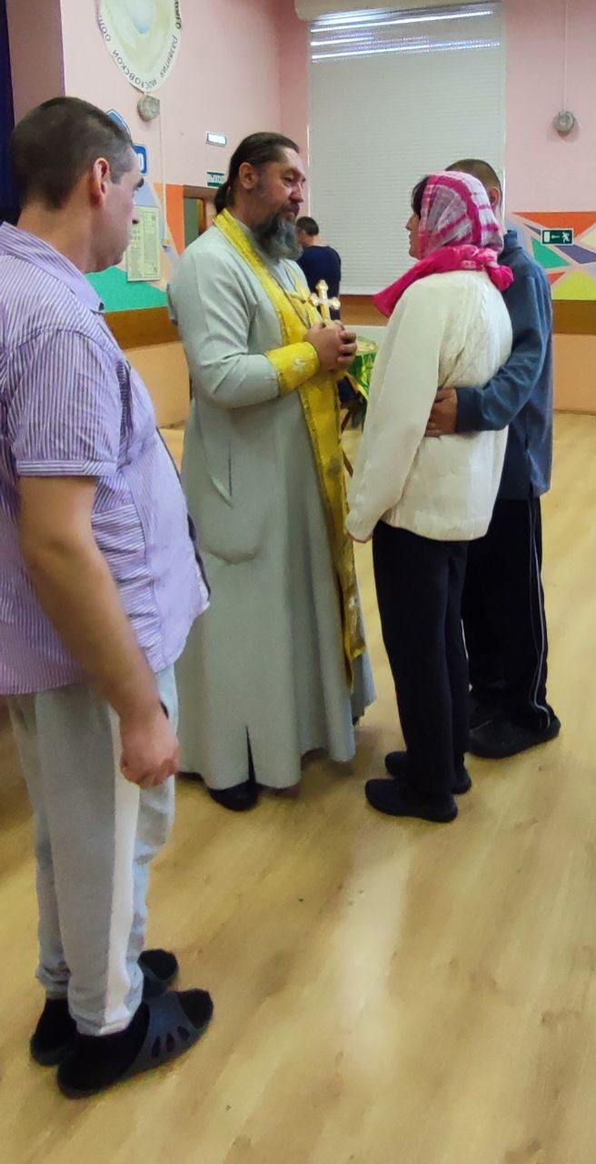 23 сентября священник Василий Годунов, настоятель храма Благовещения Пресвятой Богородицы в д.Бражниково, посетил пациентов стационарного отделения «Осташево» ГБСУСО МО «Добрый дом Одинцовский» в д.Середниково Волоколамского округа.