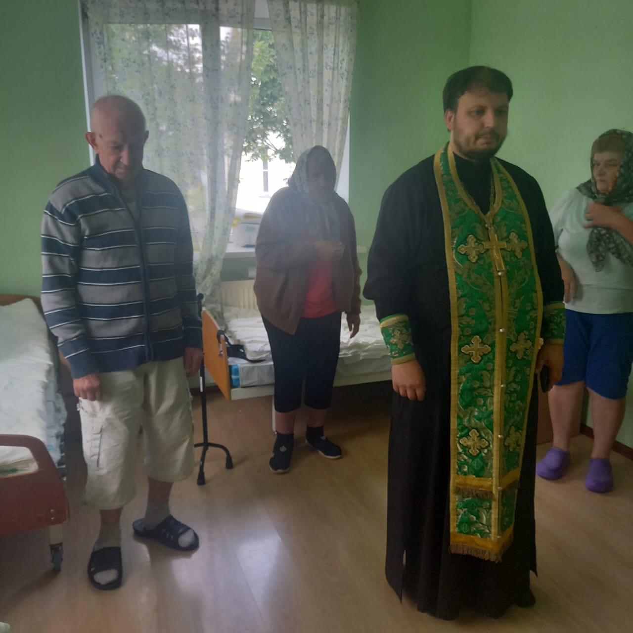 24 июня, в день Святого Духа, клирик храма блгв. кн. Александра Невского пос.Княжье Озеро иерей Александр Чибисов посетил пансионат «Мирра» для инвалидов и престарелых людей.