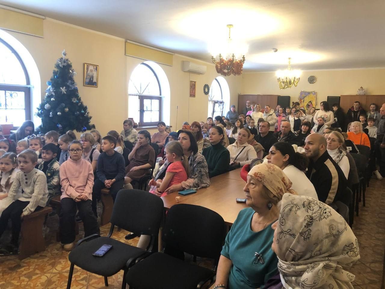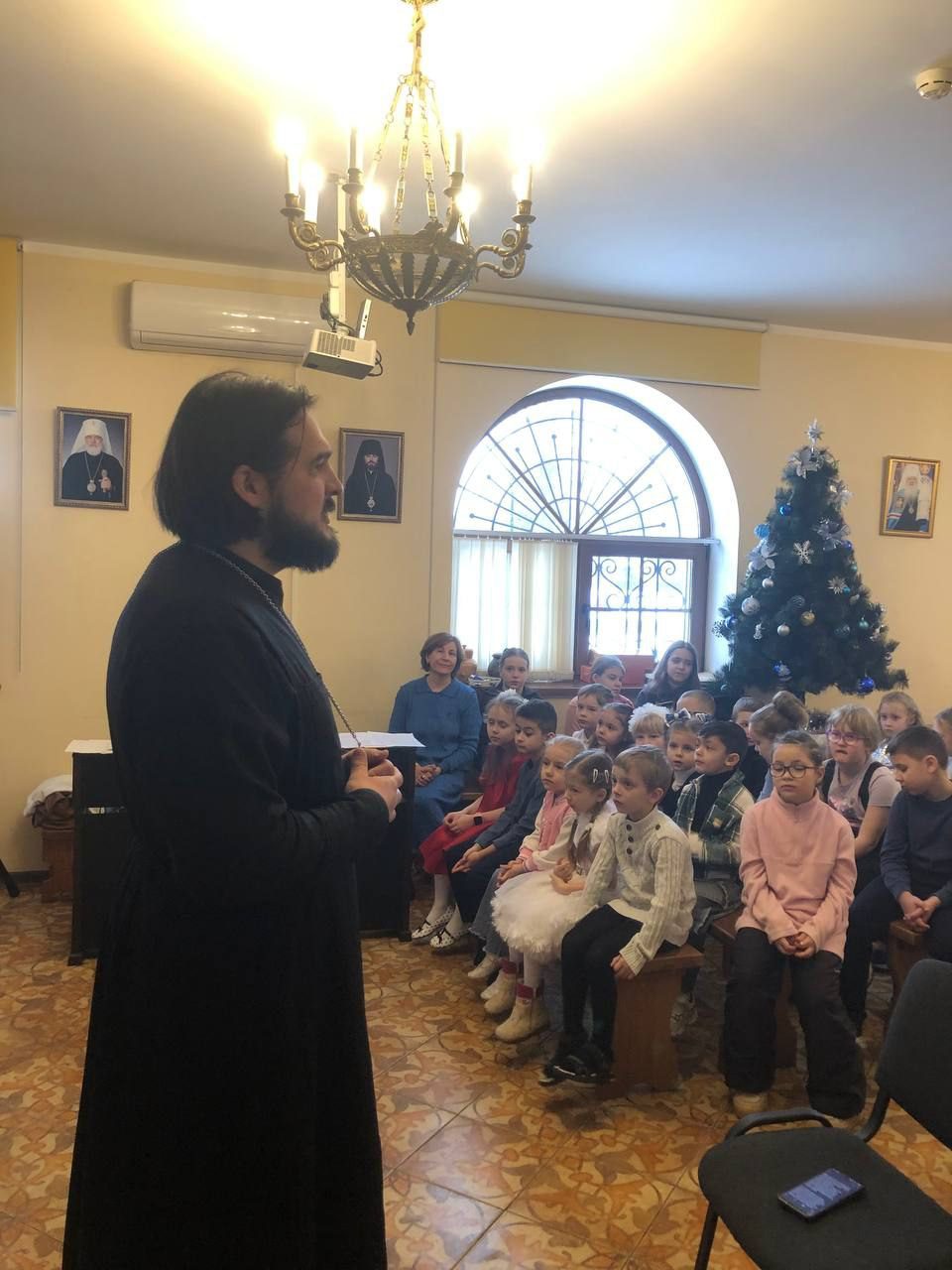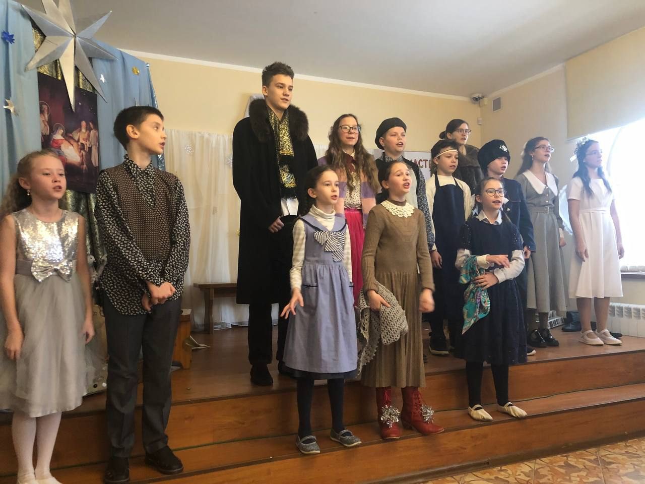 После поздравления священника Дионисия Клычкова выступил старший и младший хор с Рождественскими песнопениями.