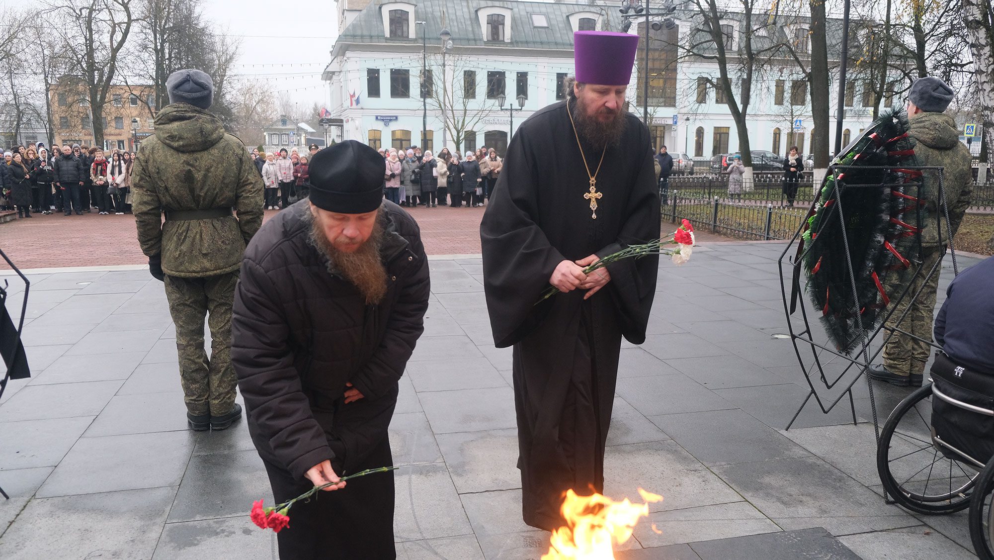 5 декабря в г. Звенигороде состоялось празднование 84-ой годовщины начала контрнаступления советской армии под Москвой. Настоятель Александро-Невского храма г. Звенигорода протоиерей Александр Карлюк, в составе делегации, состоящей из представителей депутатского корпуса, совета ветеранов города, педагогов и учащихся звенигородских школ, возложил цветы у монументов, находящихся в четырех исторических местах города. Два из них созданы на месте братских захоронений воинов – участников обороны Москвы. Основным событием праздника стал митинг у монумента почившим воинам Великой Отечественной Войны, в котором приняли участие начальник территориального управления г. Звенигорода Гончаревский Виталий Викторович, настоятель Александро-Невского храма г. Звенигорода протоиерей Александр Карлюк, насельник Саввино-Сторожевского ставропигиального монастыря архимандрит Варфоломей (Петров), заместитель главы территориального управления города Звенигорода Карпеев Николай Владимирович, председатель совета ветеранов Петрова Любовь Николаевна, депутат Совета депутатов Одинцовского городского округа Александров Дмитрий Игоревич, члены ветеранских организаций, представители образовательных учреждений, жители и гости города.