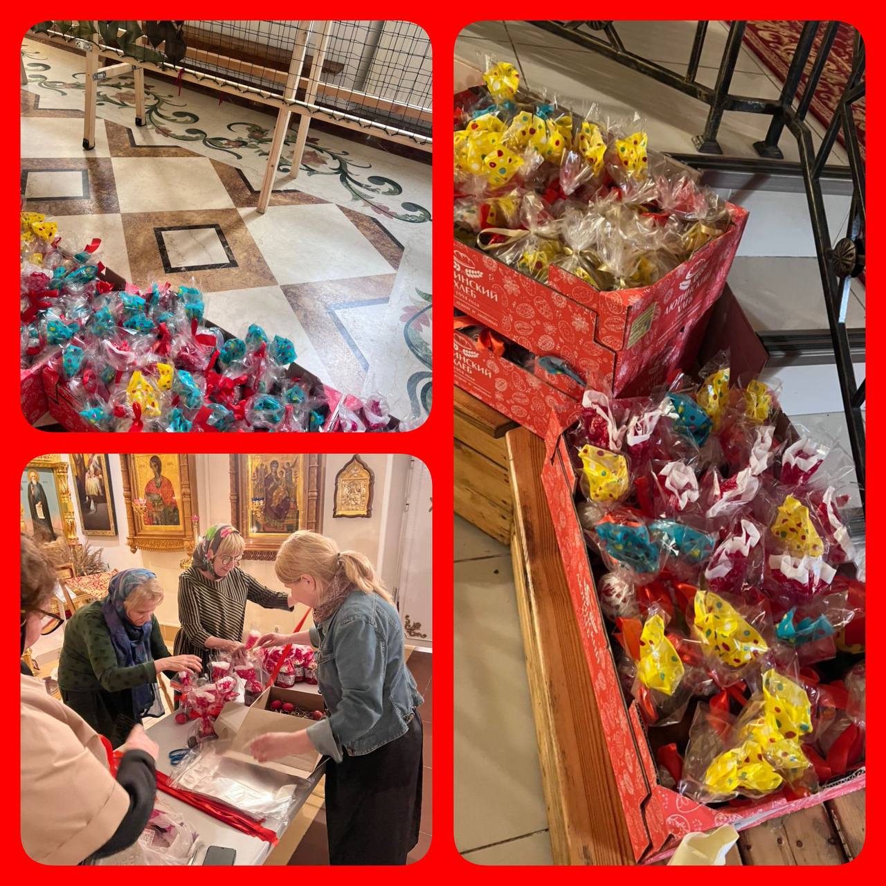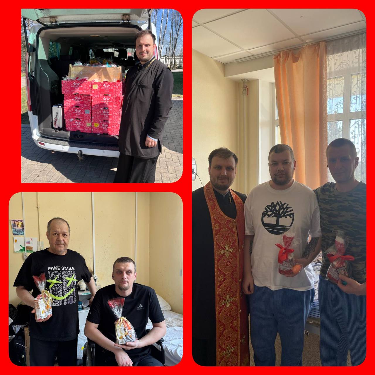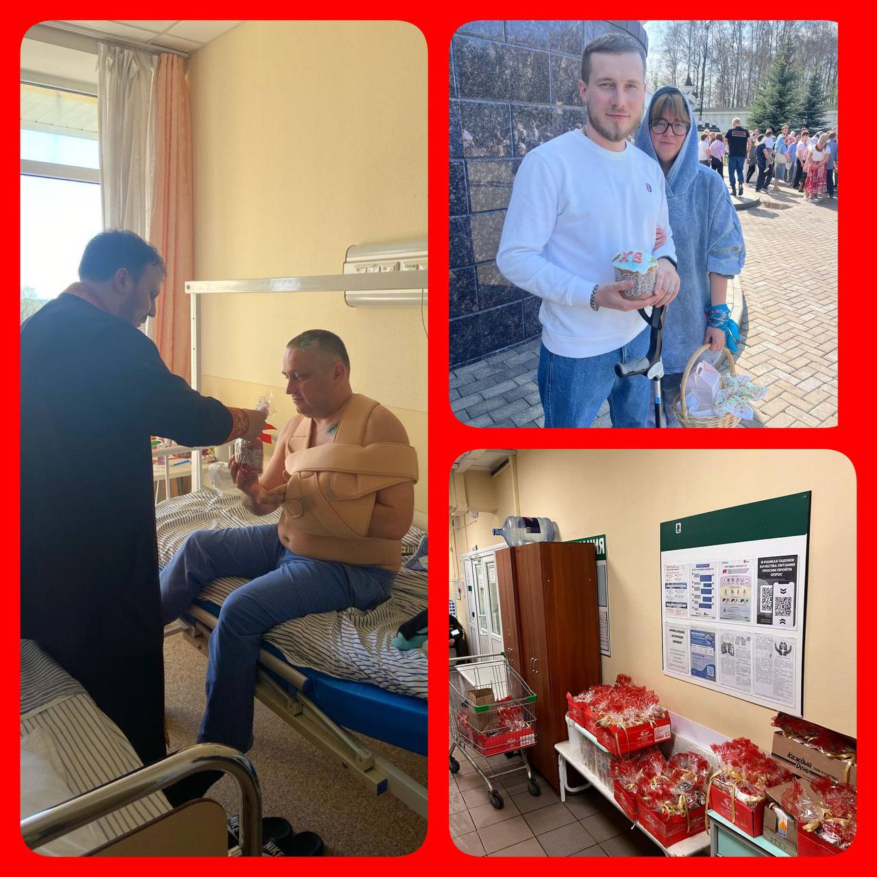 В дни Страстной седмицы в ожидании долгожданного Праздника Светлого Христова Воскресения прихожане храма Александра Невского (пос. Княжье Озеро), по благословению настоятеля иерея Авдея Правдолюбова, подготовили подарки нашим дорогим воинам-защитникам Отечества! С Божьей помощью удалось сделать около 500 Пасхальных наборов. За годы СВО у нашего прихода появилось много друзей-участников СВО. С особой радостью поздравили домашним куличом воина Александра. А в наши подшефные больницы съездили с подарками сами. Прихожане поздравили солдат, проходящих лечение в больнице Звенигорода. В светлый Праздник Пасхи иерей Александр Чибисов посетил бойцов в госпитале Вишневского! Отрадно, с какой любовью и заботой прихожане готовили, покупали и собирали подарки воинам! Ведь Воскресение Христово – победа Жизни над смертью, Любви над злом! Воистину Воскресе Христос!