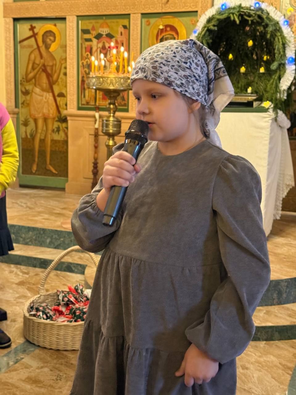 Поздравительная программа состояла из выступления детской воскресной школы и выступления приглашенных детей.