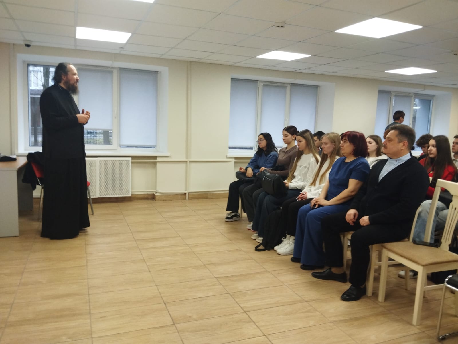 4 декабря, в рамках Рожественских образовательных чтений, состоялась встреча учащихся в Филиале Финансовой Академии при Правительстве Российской Федерации Звенигородском Финансово-экономическом колледже с настоятелем Александро-Невского храма г. Звенигорода протоиереем Александром Карлюком. Протоиерей Александр рассказал ребятам о значении праздника Введения во храм Пресвятой Богородицы и о том, как одно событие в жизни человека может решительным образом повлиять на его судьбу. На встрече присутствовал директор Филиала Клачков Павел Владимирович.