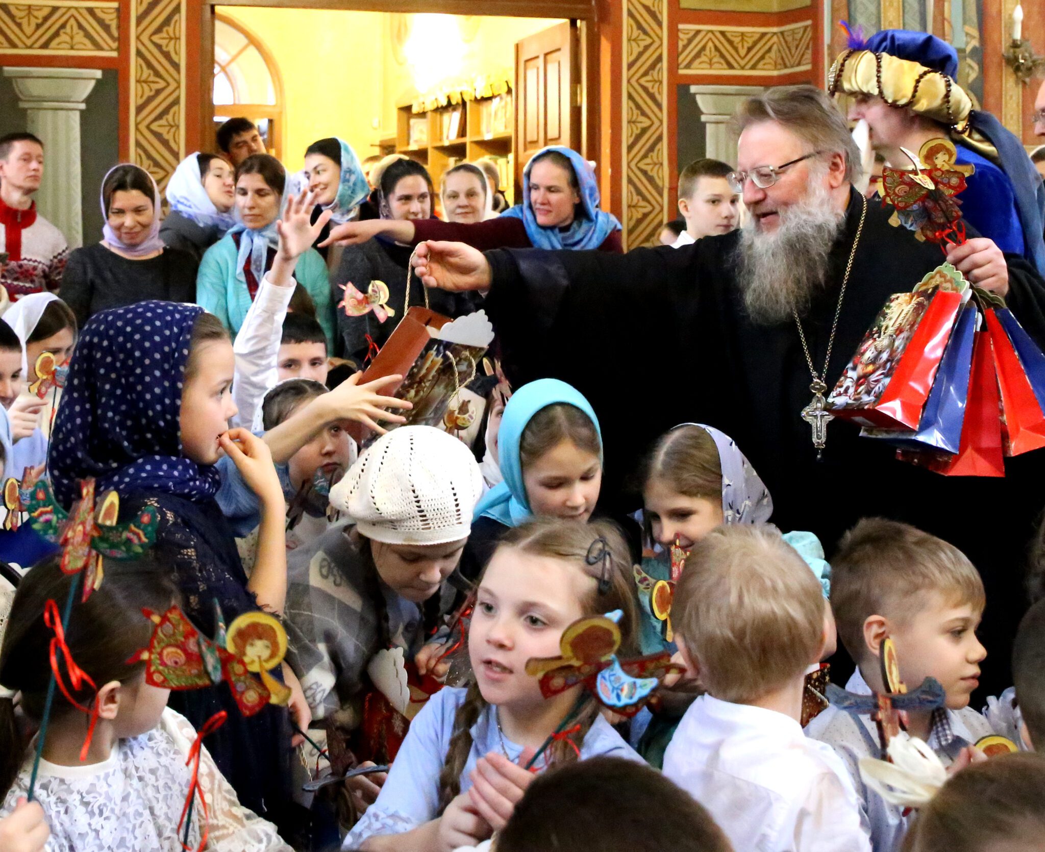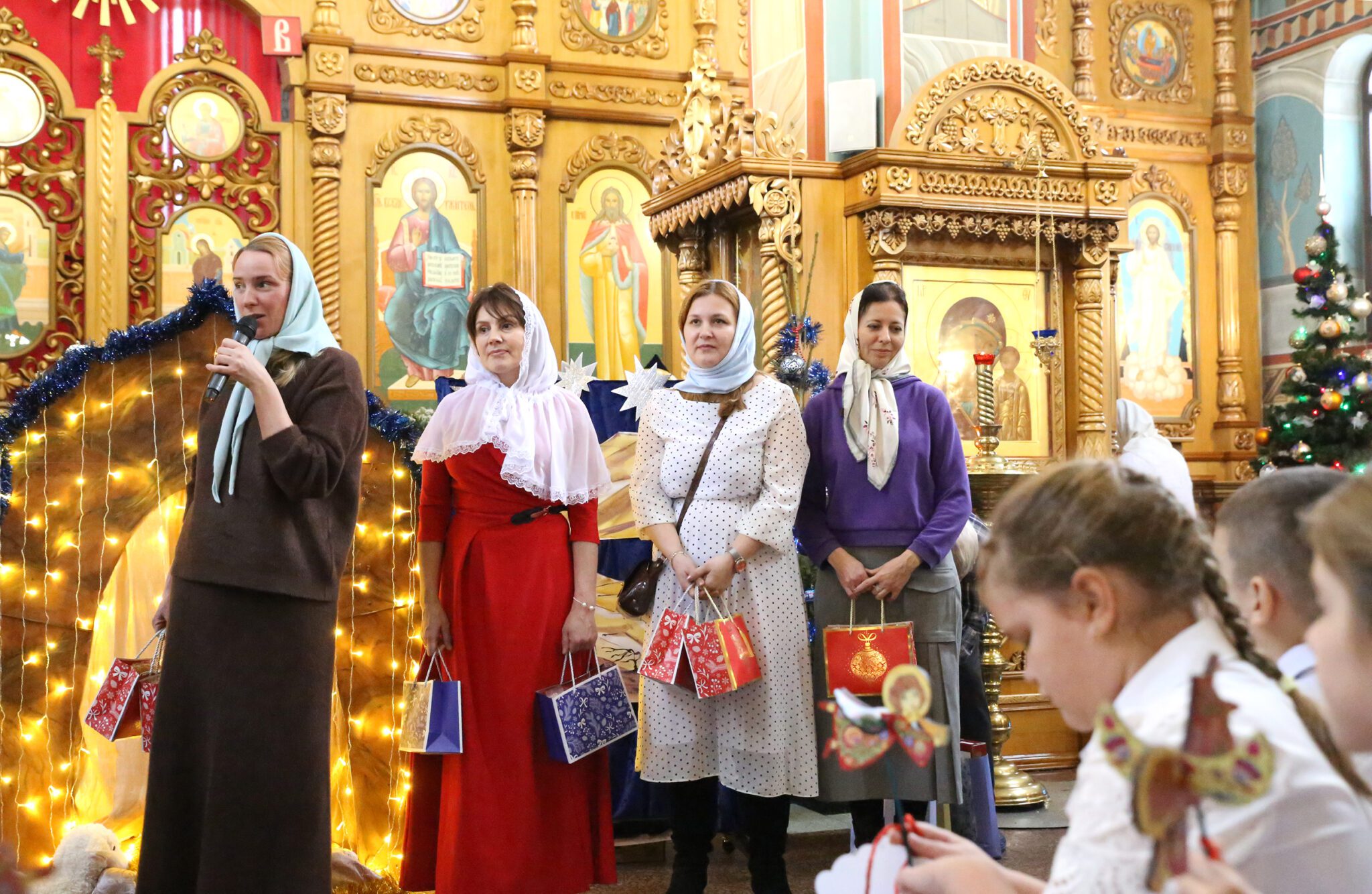 Заключительным этапом концерта стало вручение рождественских подарков всем ученикам воскресной школы. Также с поздравительным словом выступили родители воспитанников, которые передали памятные подарки и выразили благодарность священникам храма за духовное окормление детей и педагогам воскресной школы за их жертвенное служение делу православного воспитания.