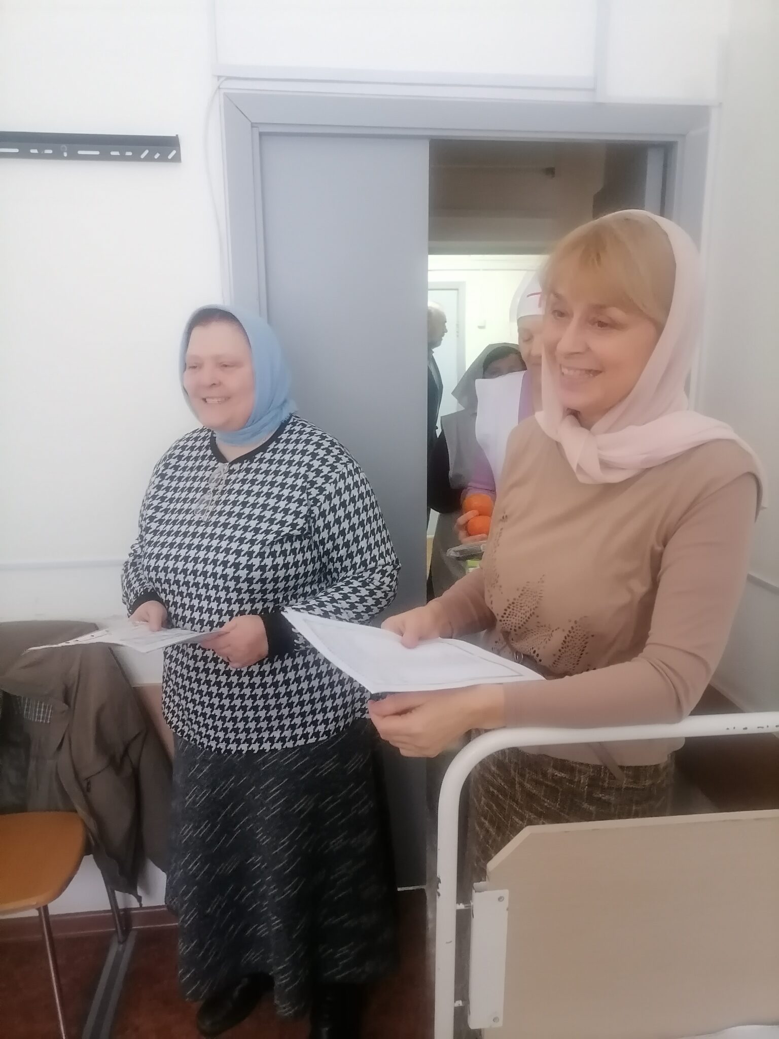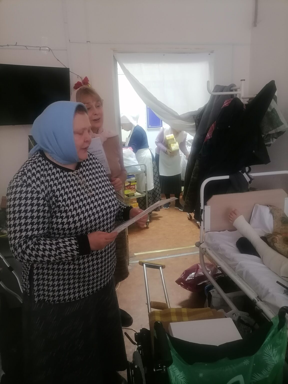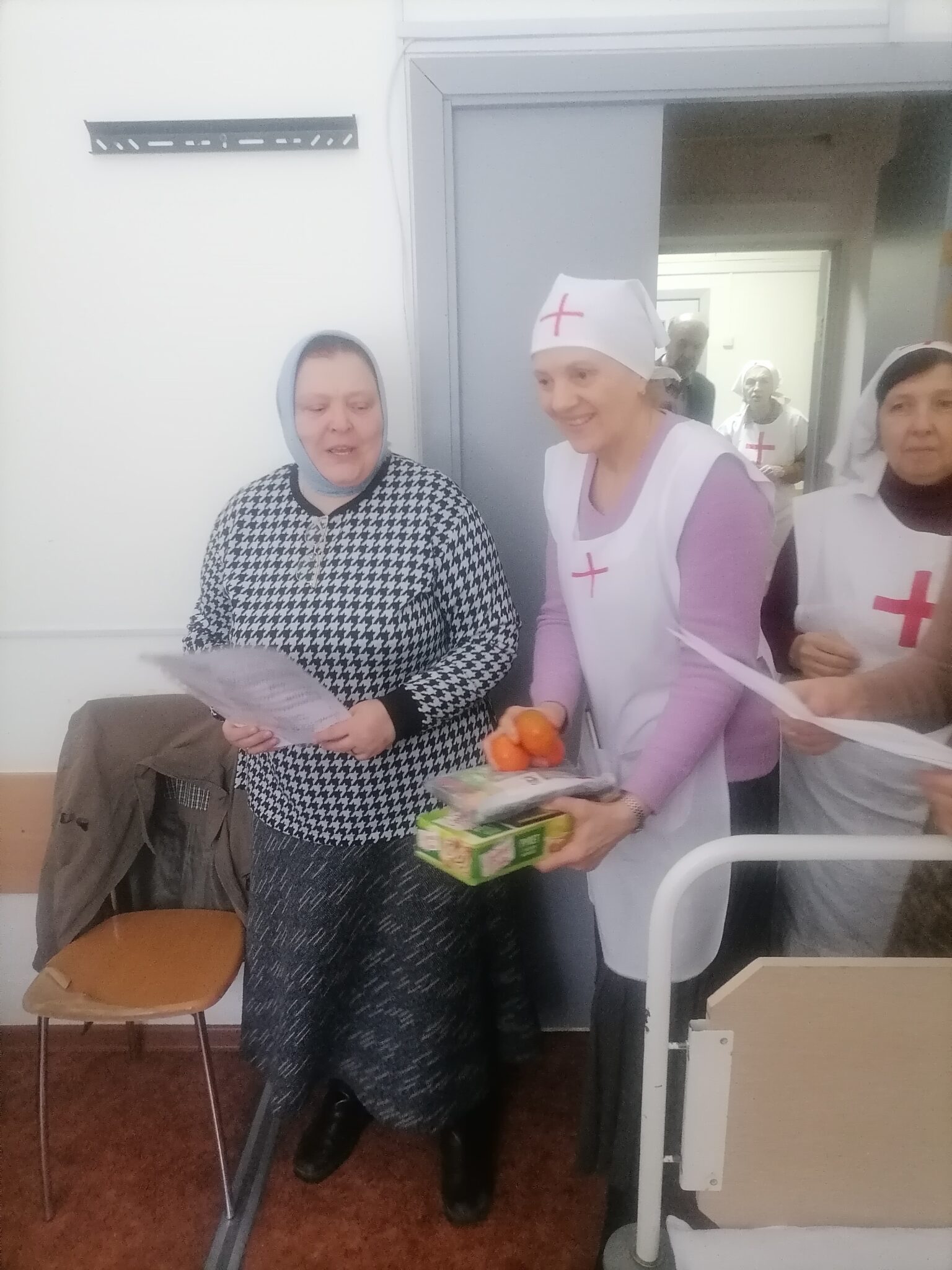8 января после отслужанной Литургии в больничном храме. Сестры Елизаветенского сестричества вместе со священником Константином Ильиным поздравили раненых ребят. Сестры спели Рождественские колядки. Ребятам были подарены рождественские подарки.