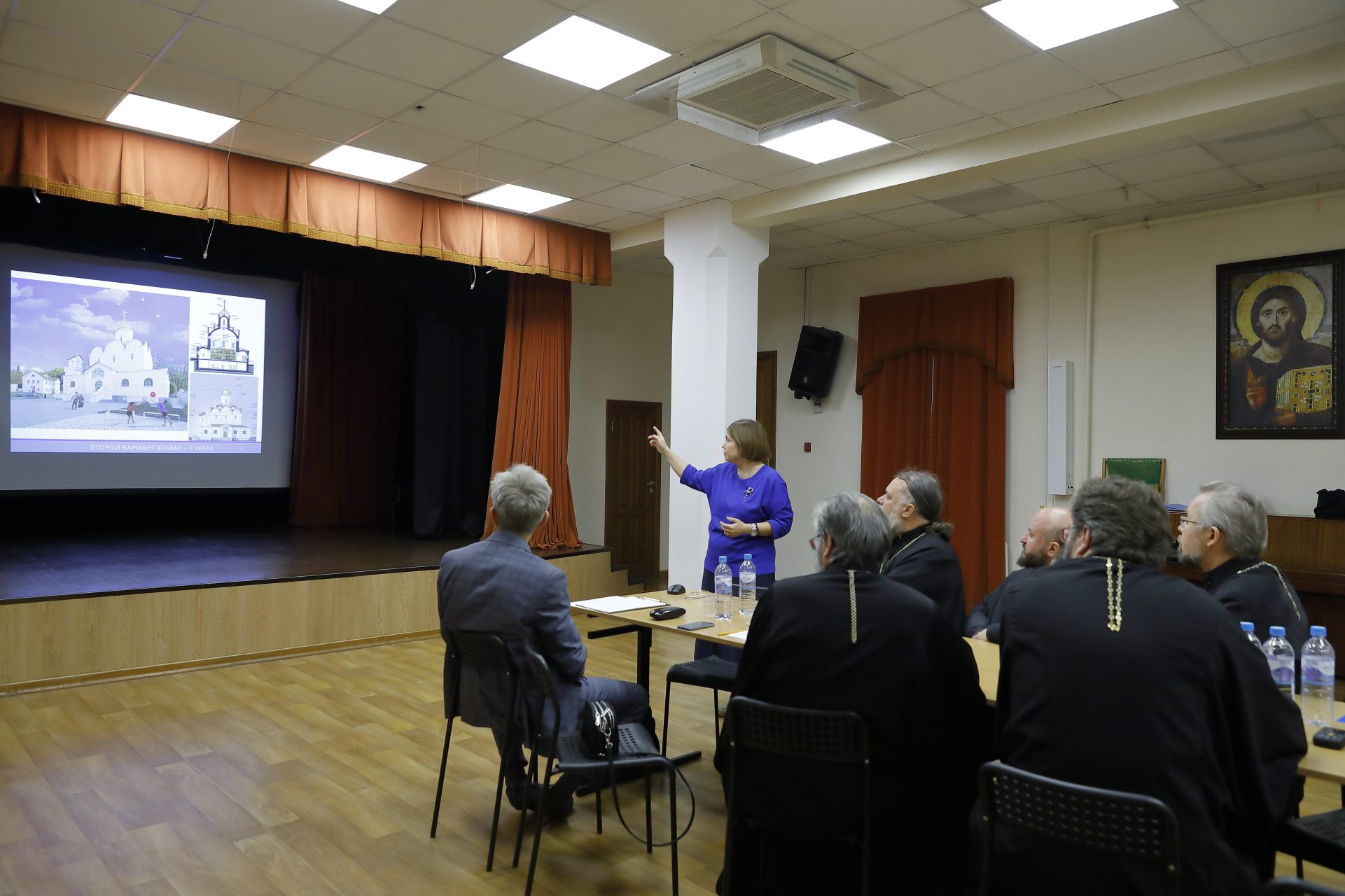Архитекторы Сергей Григорьевич Гончаров и Дарья Владимировна Родионова рассказали о своем участии в программе строительства православных храмов в Москве (программа 200), о новом архитектурном стиле «Русская бионика», который уже получил признание некоторых православных архитекторов. Участники собрания обменялись мнениями по этим вопросам.