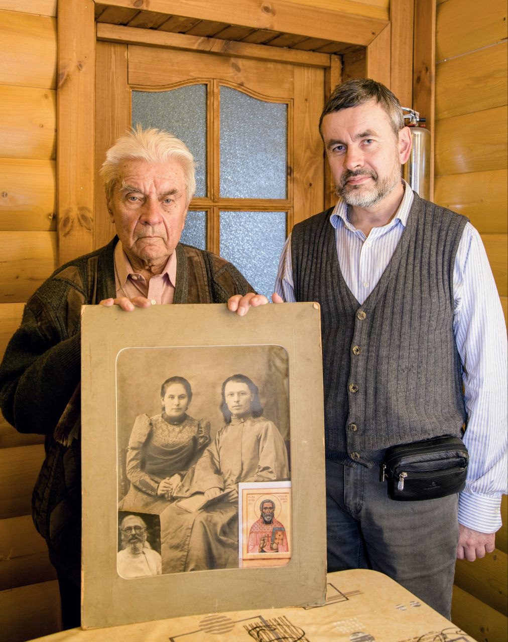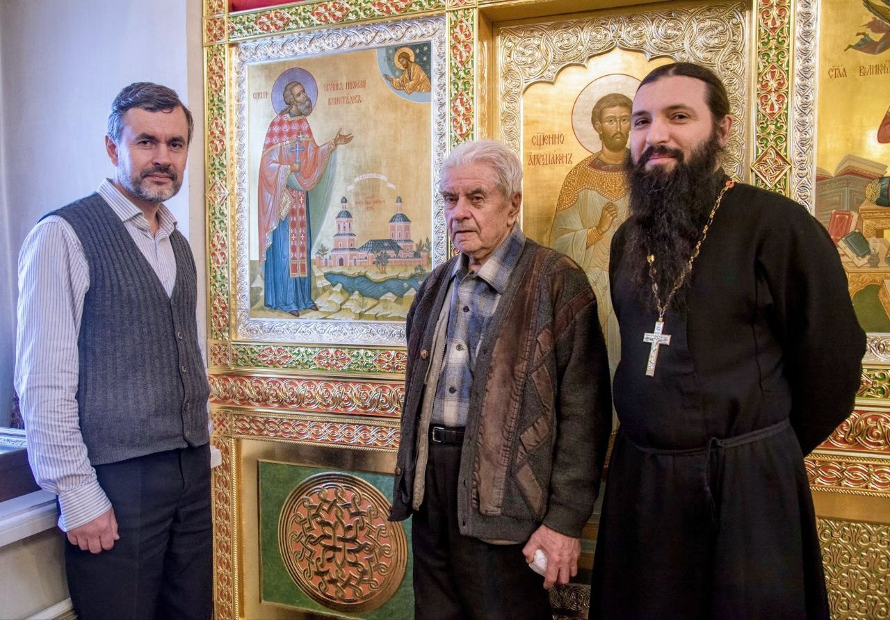 На фото у иконы – внук и правнук Новомученика.