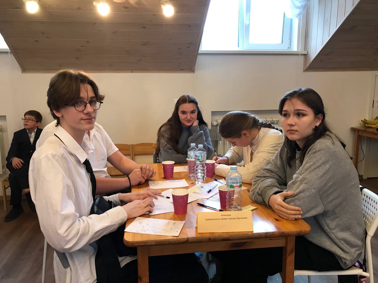 На соревнование собрались команды: взрослых и команда молодёжи Покровского храма в с. Перхушково, команды Георгиевского собора в Одинцово, Вознесенского собора в Звенигороде, Гребневского храма в Одинцово и команда добровольцев Истринского благочиния. В жюри заседали: настоятель нашего храма о. Сергий Золотов, диакон Иоанн Егоров, матушка Евгения (супруга диакона Иоанна) и педагог по музыке Наталья Дмитриева.