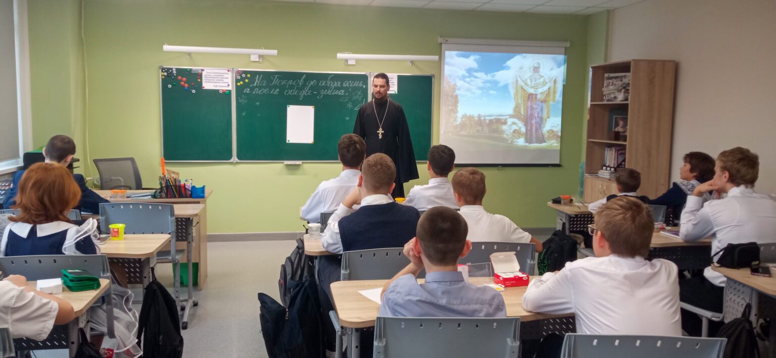 16 октября в Лотошинской СОШ № 1 для учащихся 7 класса прошел урок, посвященный празднику Покрова Пресвятой Богородицы.