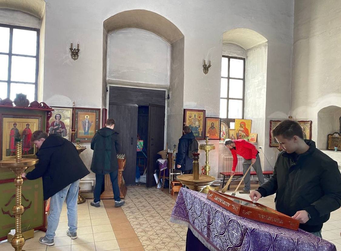 4 апреля в рамках акции “Вера без дел мертва” учащиеся Муниципального образовательного учреждение средняя общеобразовательная школа «Перспектива» (с. Борисово) Можайского ГО посетили Воскресенский храм своего села, где пообщались с настоятелем храма священником Сергием Латышевым и провели уборку в храме и прилегающей к храму территории.
