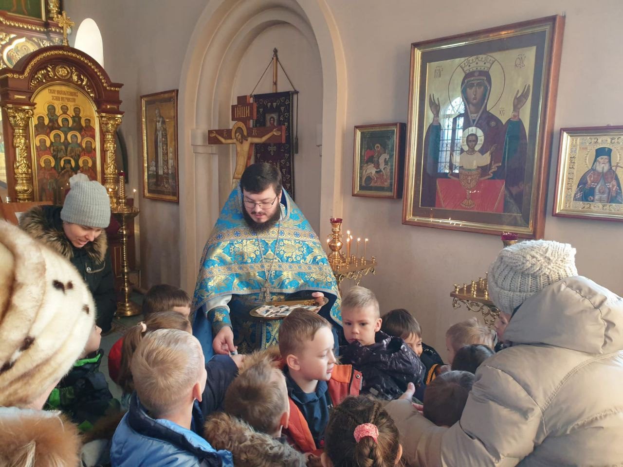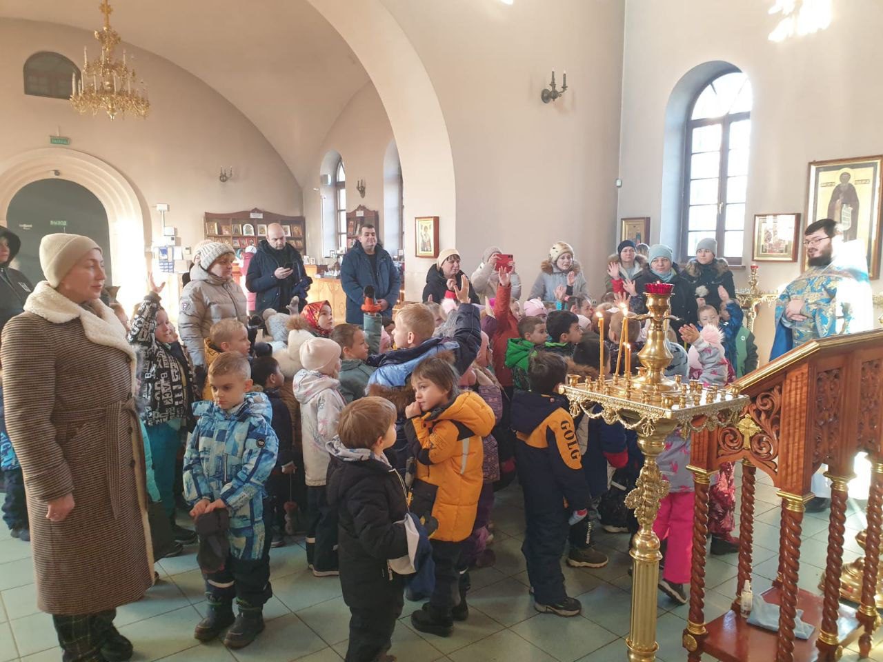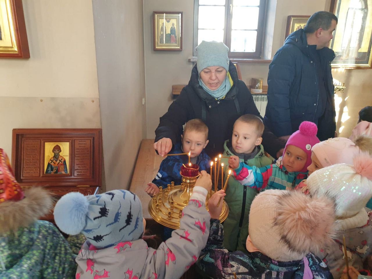 22 ноября наш храм вновь посетили дети и воспитатели детского сада МОУ «СОШ имени Л. М. Доватора» (# 3-17, 2-5). Священник Пётр Дударев провел экскурсию по храму, рассказал о вере в Бога. По окончании экскурсии все желающие зажгли свечи и каждый получил по шоколадке.