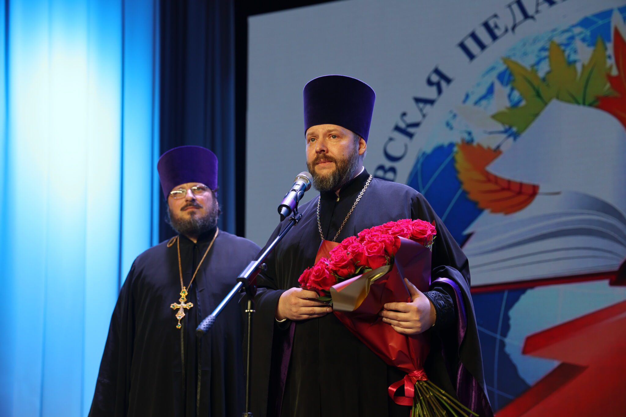 Волоколамский церковный округ на мероприятии представляли благочинный протоиерей Герман Григорьев и заместитель благочинного, ответственный за религиозное образование и катехизацию священник Михаил Завитаев, обратившиеся к собранию.
