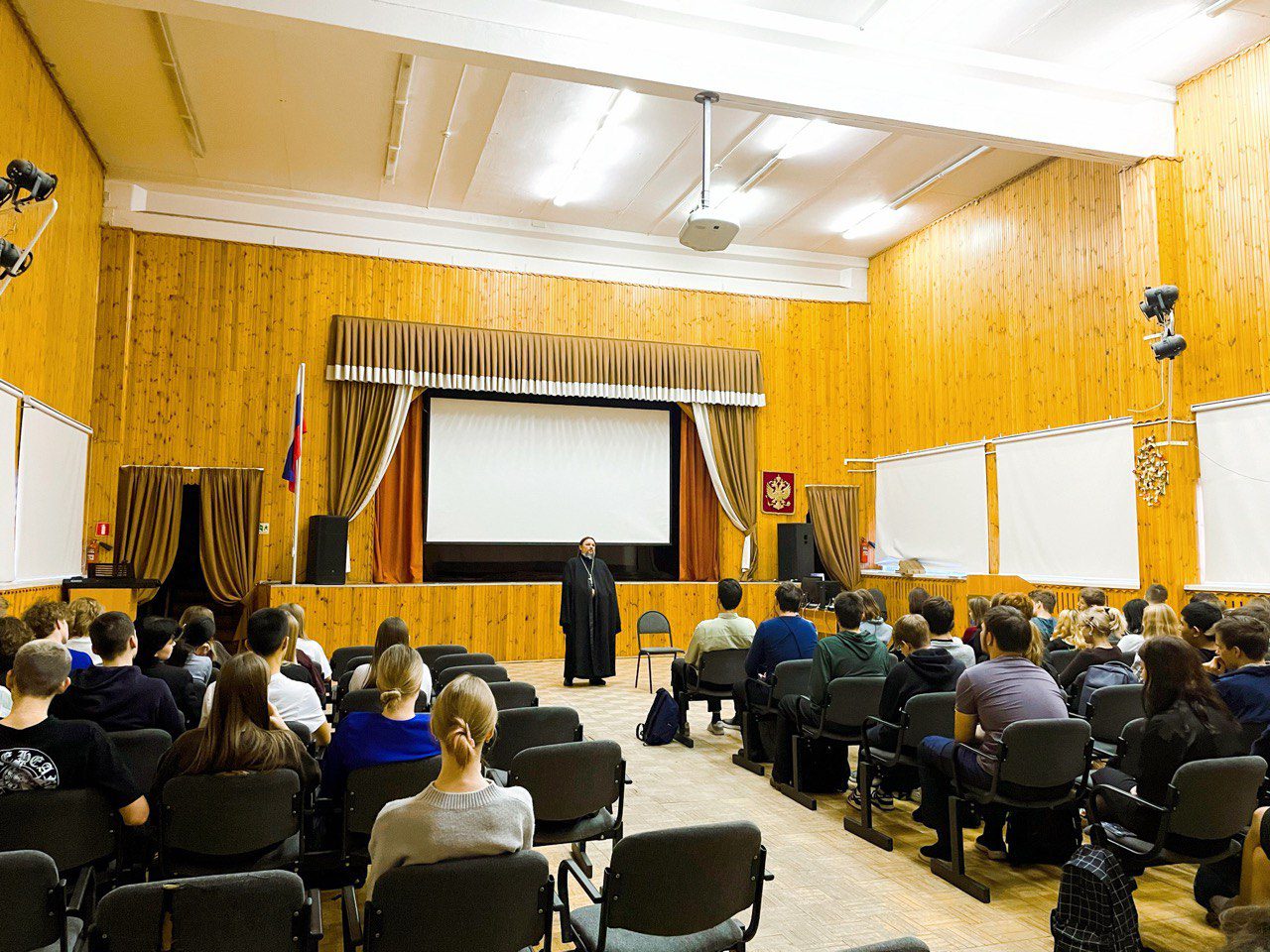 13 ноября в гимназии №6 г. Красногорска состоялась акция «Задай вопрос священнику». В рамках акции настоятель Иоанно-Златоустовского храма д. Козино протоиерей Иоанн Безруков провел встречу со старшеклассниками. Основной темой беседы был разговор о традиционных ценностях. Также протоиерей Иоанн ответил на многочисленные вопросы школьников.