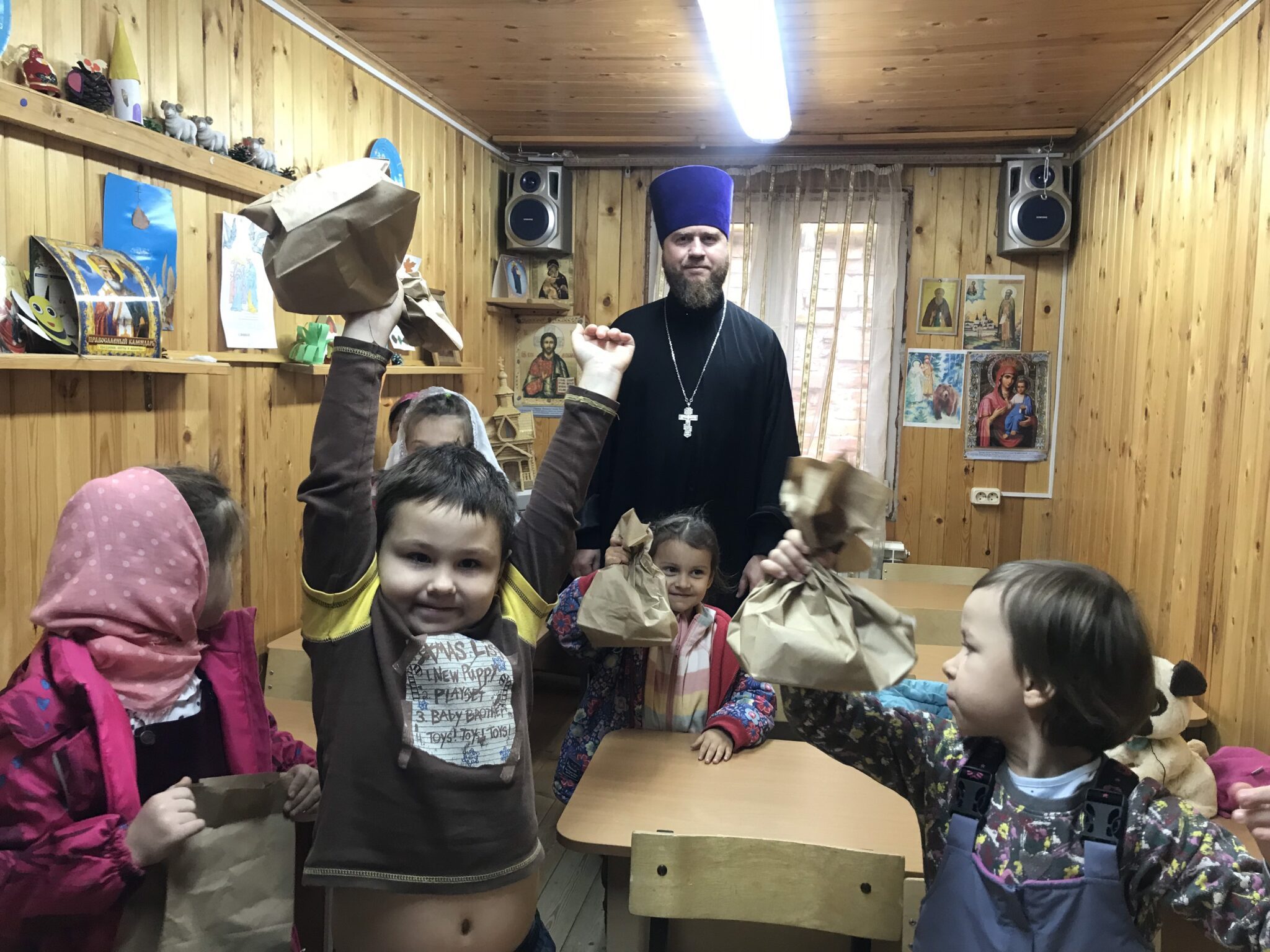 Настоятель Иоакимо-Анновского храма священник Николай Куренков подарил детям подарки и пожелал, чтобы их сердца горели любовью к Богу и ближним.