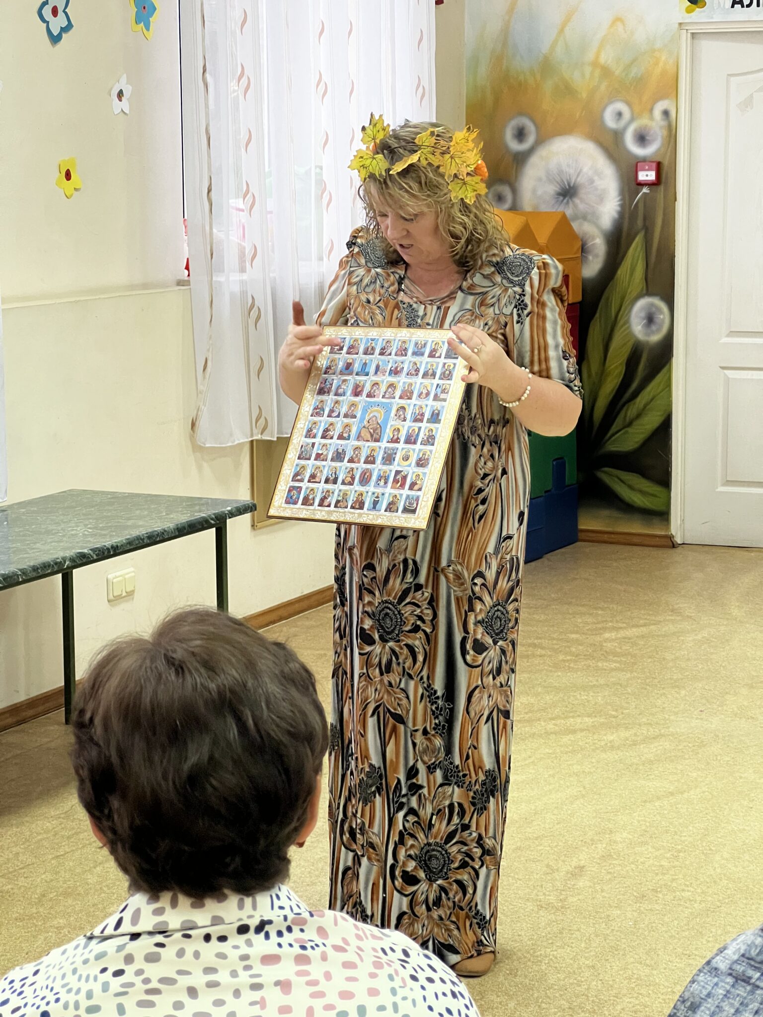 В гости к детям пришла Осень и рассказала об осенних праздниках: о Рождестве Пресвятой Богородицы, Иверской иконы Божьей Матери, Покрове Пресвятой Богородицы, иконы Казанской Божьей Матери, и, конечно, о Дне народного единства.